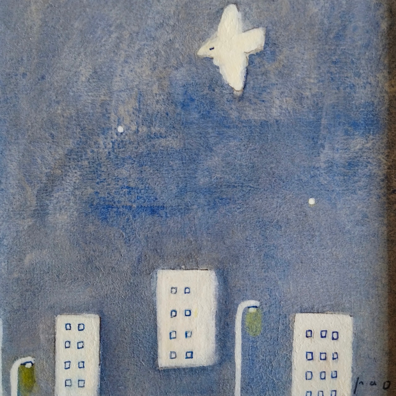 この絵をじっとみていると、雪が降り始め、地面がだんだん白くなっていく”しん”とした時間を思い出します。