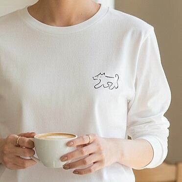 春先に着たい♩長袖Tシャツ『のんきな犬』胸元ワンポイント 男女兼用 ロンT