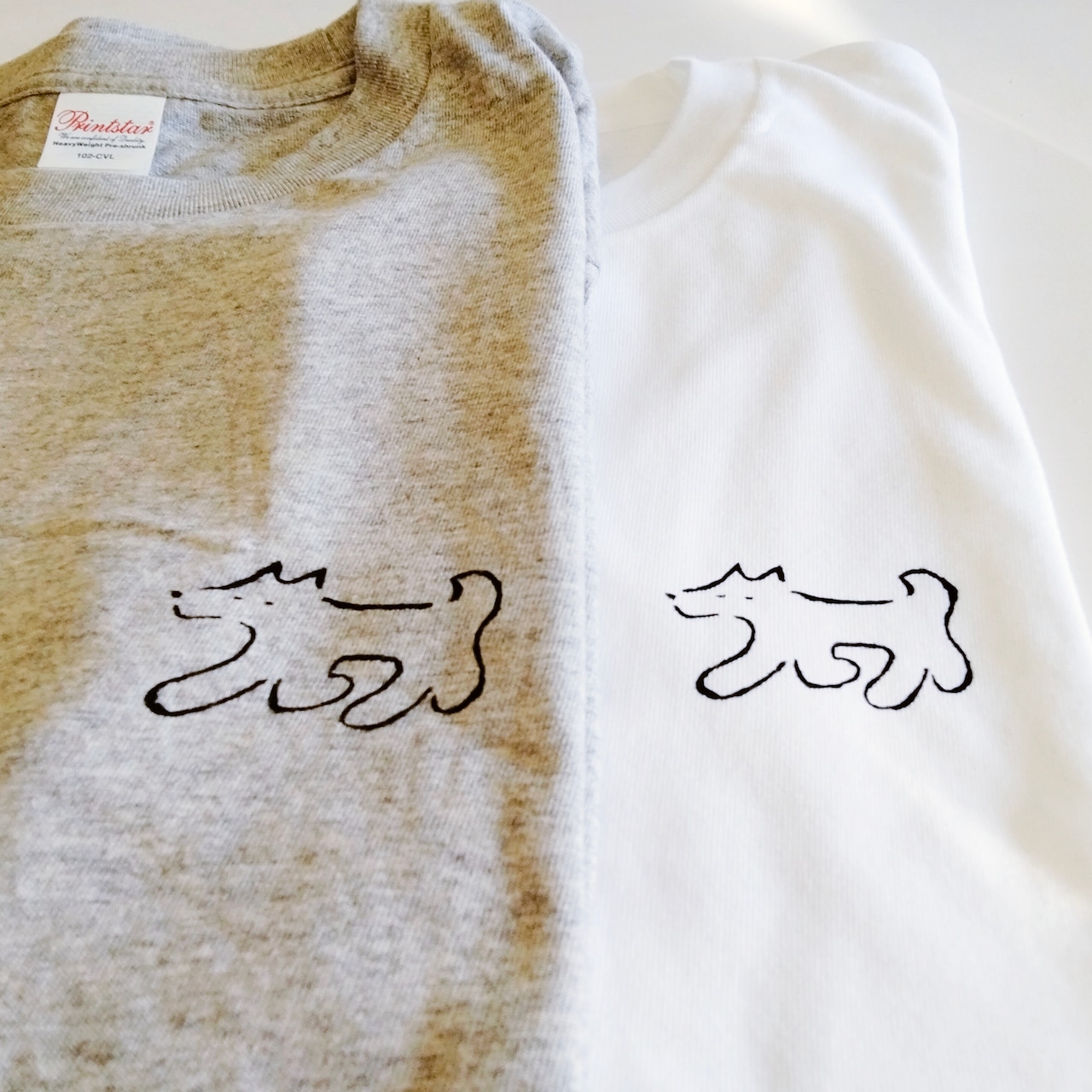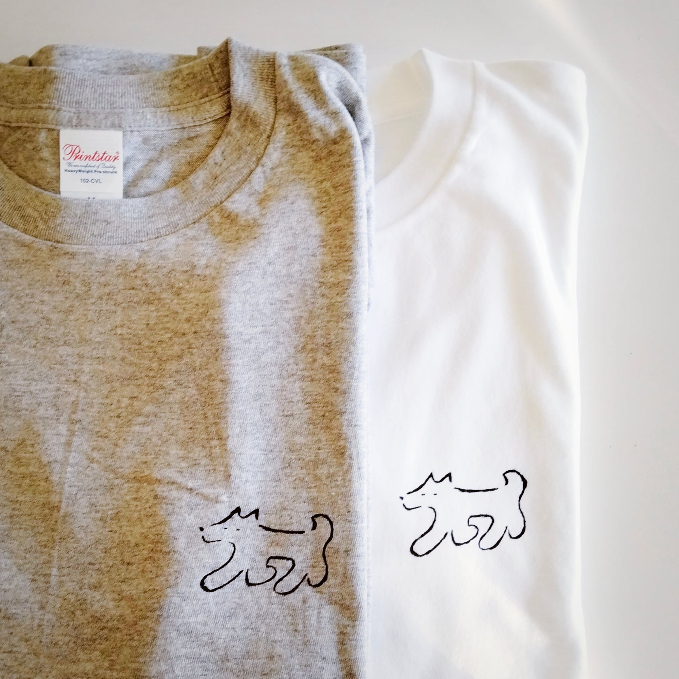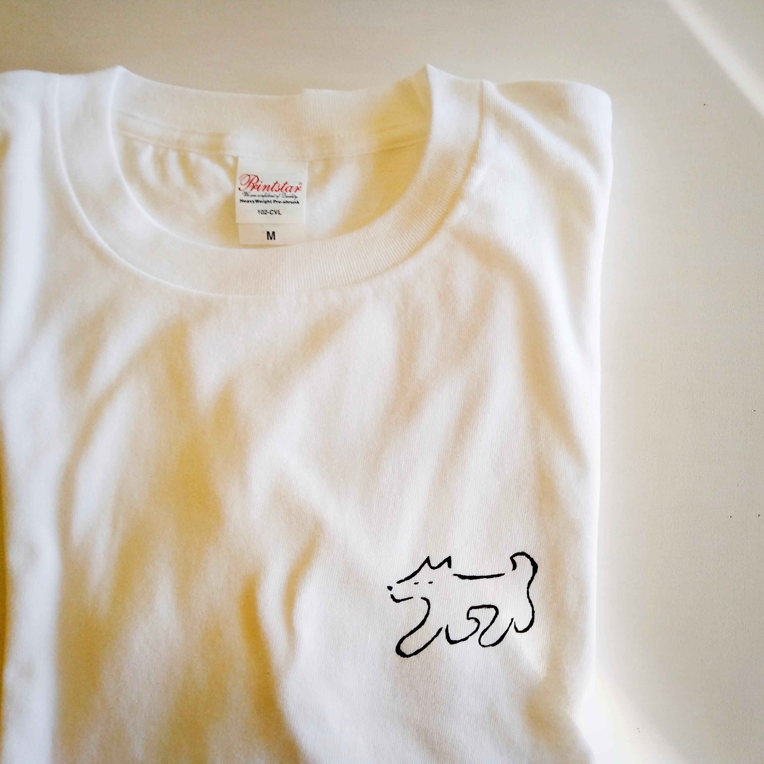 シンプルな黒い線で、ラフに描いた犬のイラストをTシャツにしたてました。