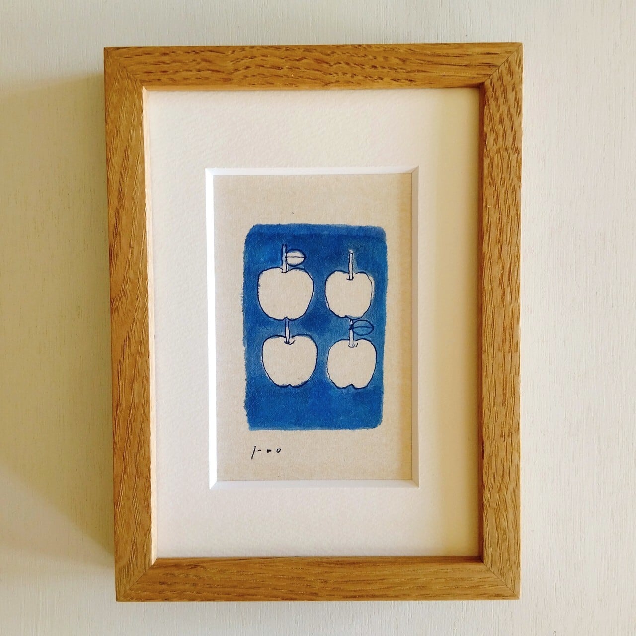 「りんご」原画 イラスト ※木製額縁入り(2Lサイズ)水彩 インテリアアート