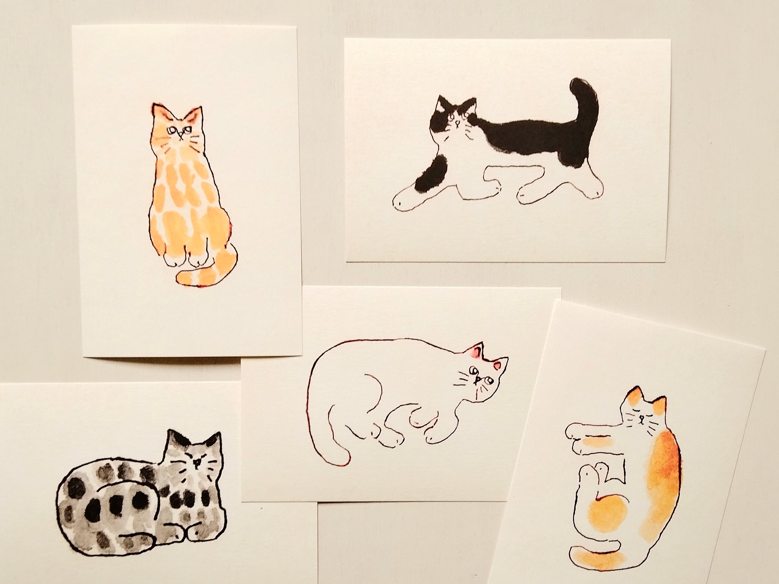 猫の絵のポストカードセットを作りました。