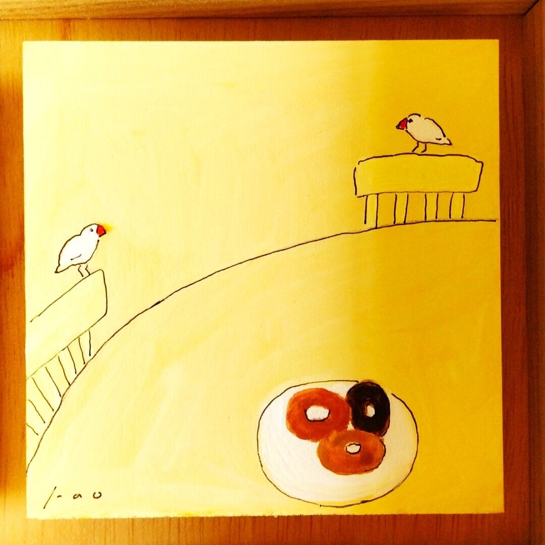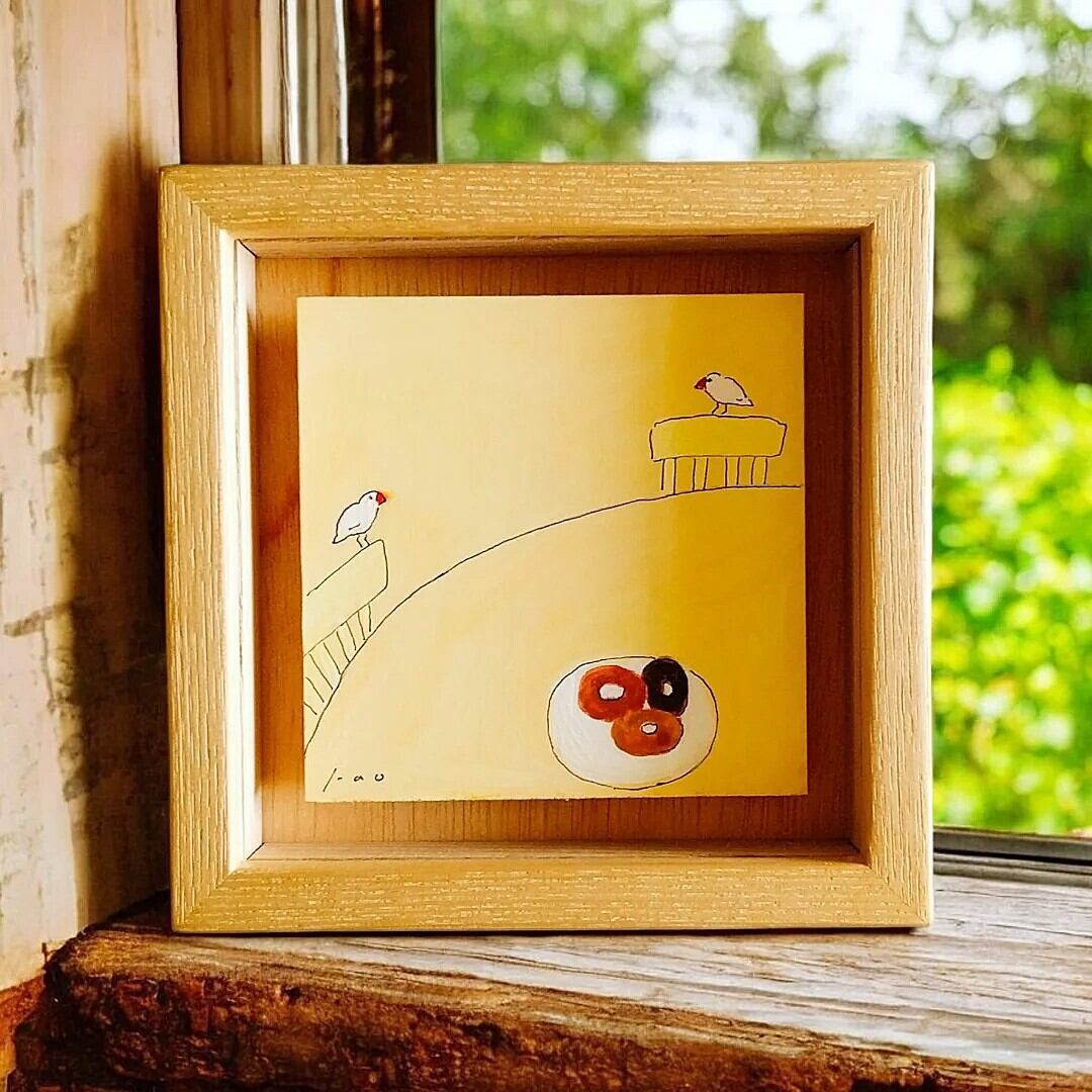 ボックス額縁入り イラスト 原画「おしゃべりな午後」インテリアアート