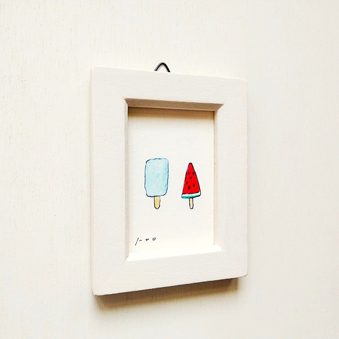小さな絵|原画「アイスキャンディー」※木製ミニ額縁入り