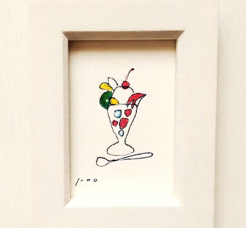 小さな絵|原画「パフェ」※木製ミニ額縁入り