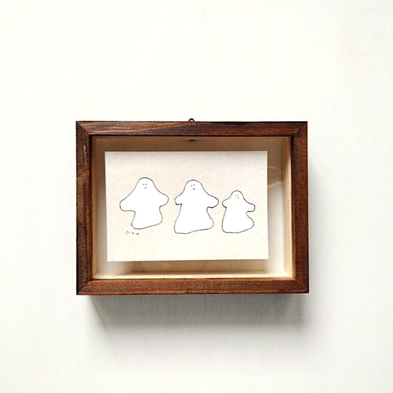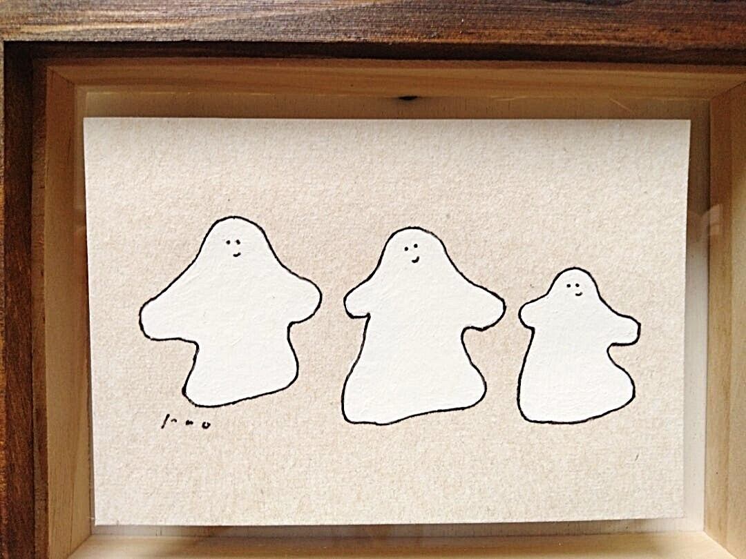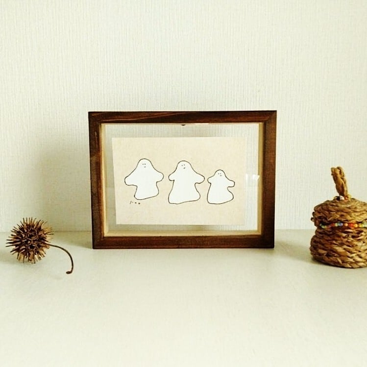 ハロウィン イラスト|原画 「三匹のおばけ」※木製額縁入り インテリアアート