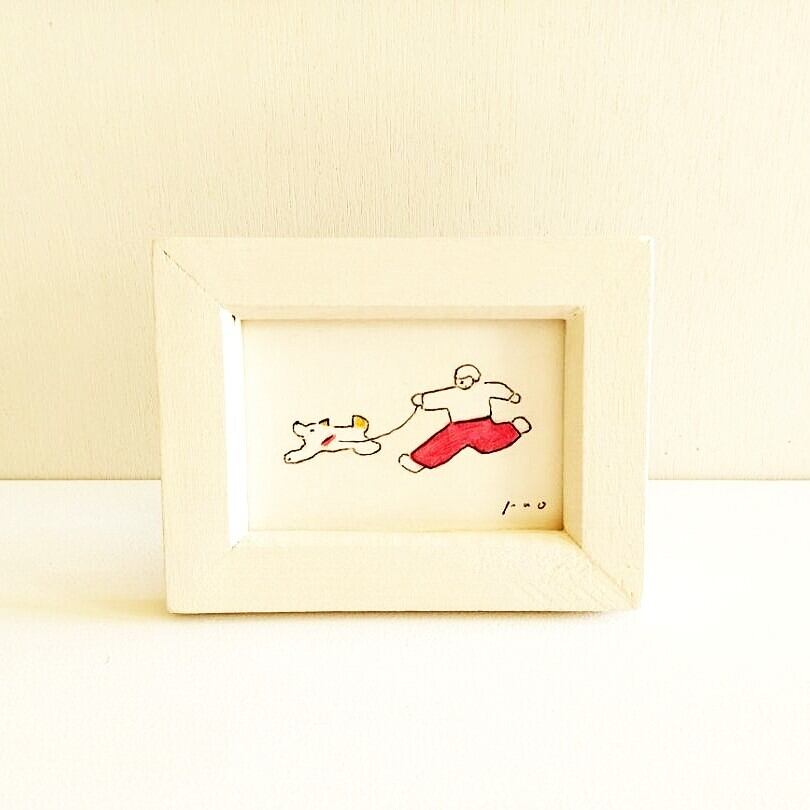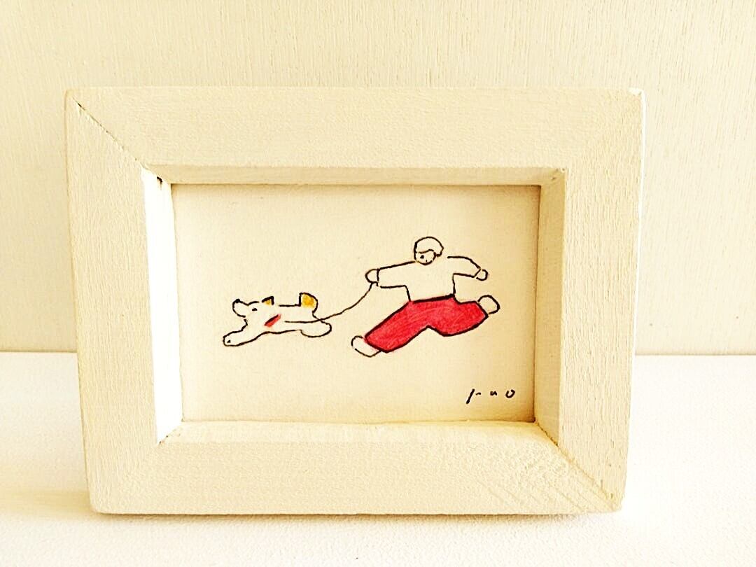犬のイラスト「仲良し」ミニ原画 ※木製額縁入り 再販