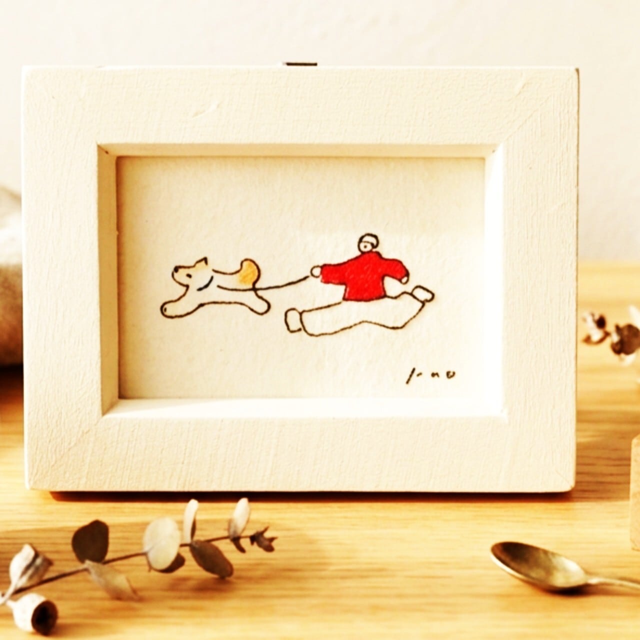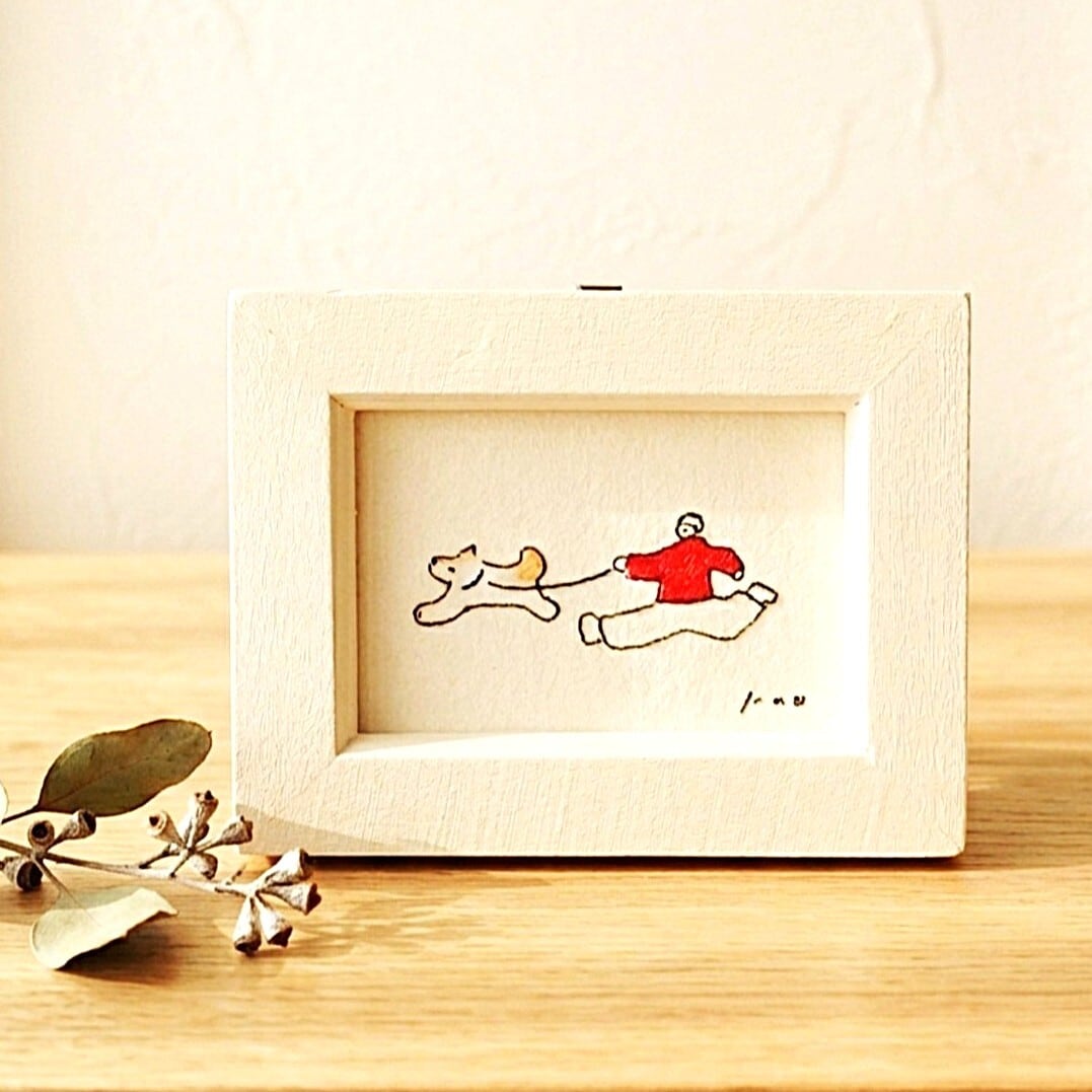 インテリア インテリアアート イラスト イラストレーター アナログイラスト ミニ額縁 シンプル ナチュラルインテリア ギフト 水彩 水彩画 犬の絵 犬 リラックス