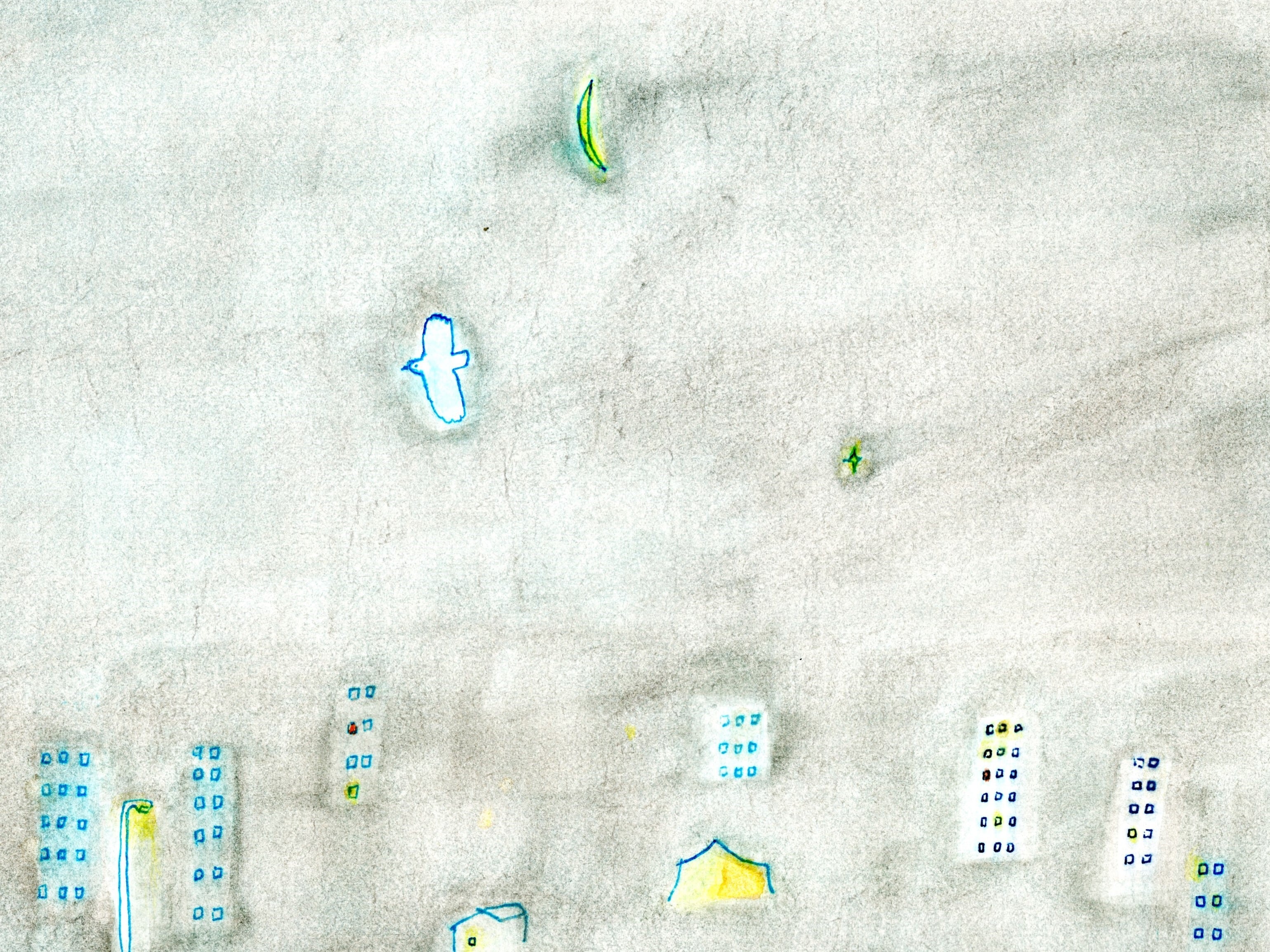 水彩絵の具や水性ペンで描いた、オリジナルイラストのポストカードです。