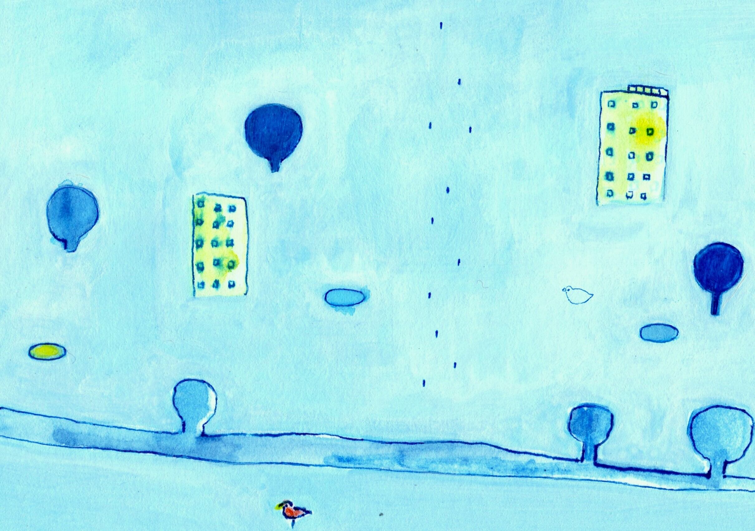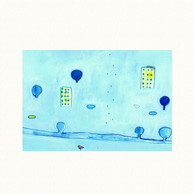 水彩絵の具や水性ペンで描いた、オリジナルイラストのポストカードです。