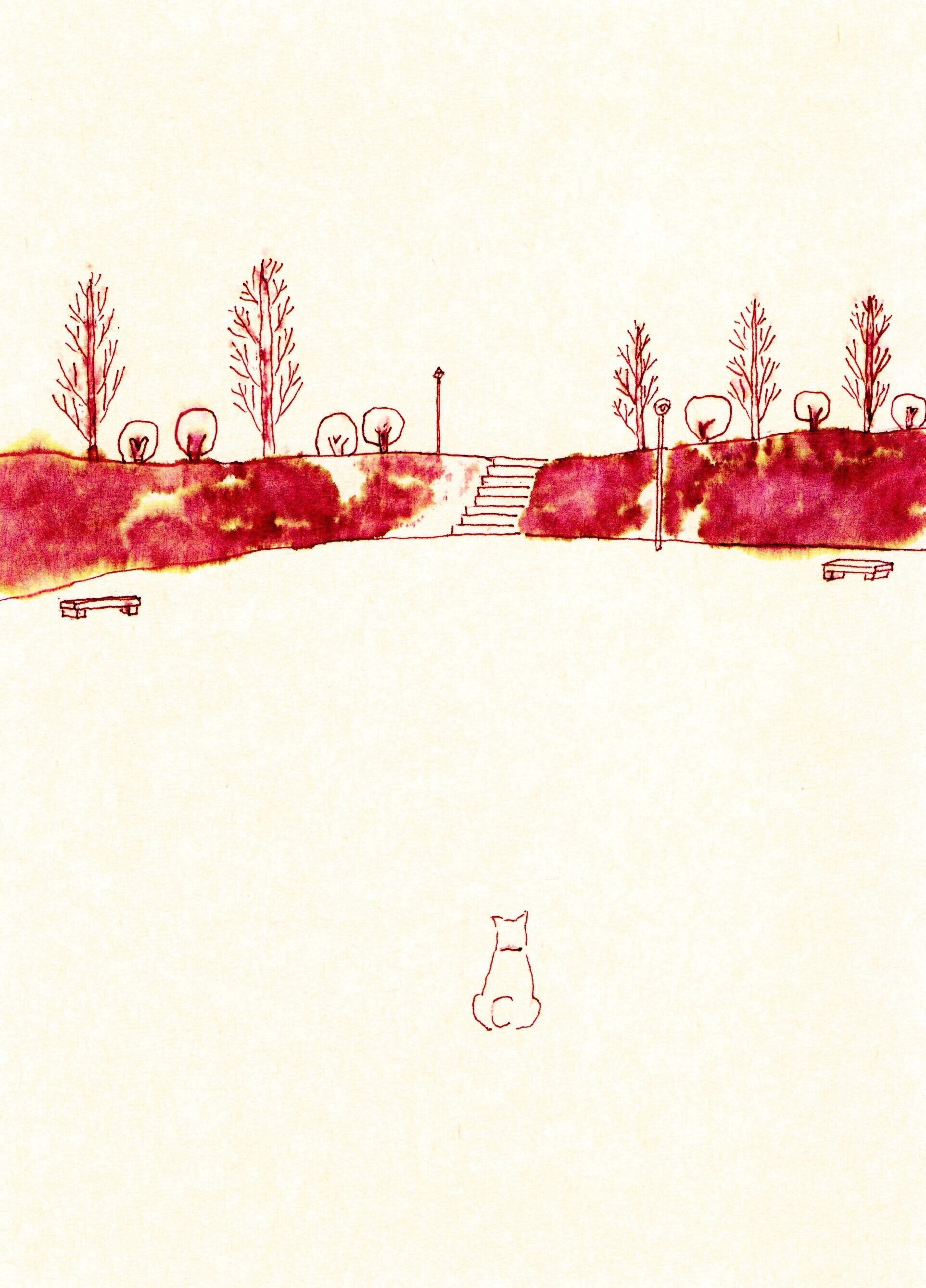 水彩絵の具や水性ペンで描いた、オリジナルイラストのポストカードです。