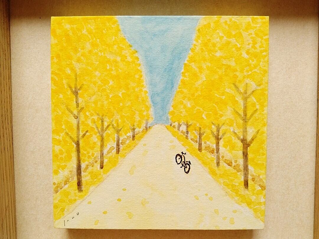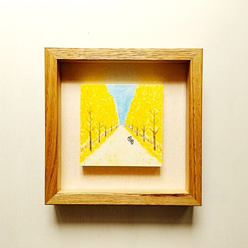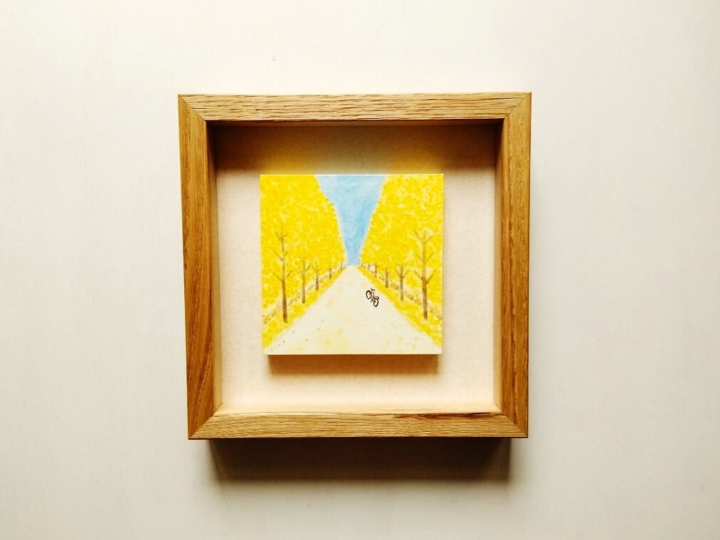 ボックス額縁入り 絵画「ある晴れた秋の日に」原画 水彩イラスト インテリアアート