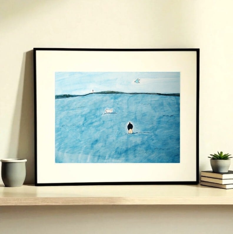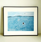 一点物|絵画 原画「風の強い日」※額縁入り(四つ切サイズ)