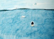 和紙にアクリルで下地、水彩絵の具、水性ペン、水彩色鉛筆など。