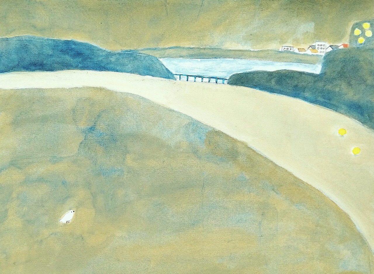 いつか見た風景のような懐かしさ、という感情を意識した心象風景を描いた絵です。