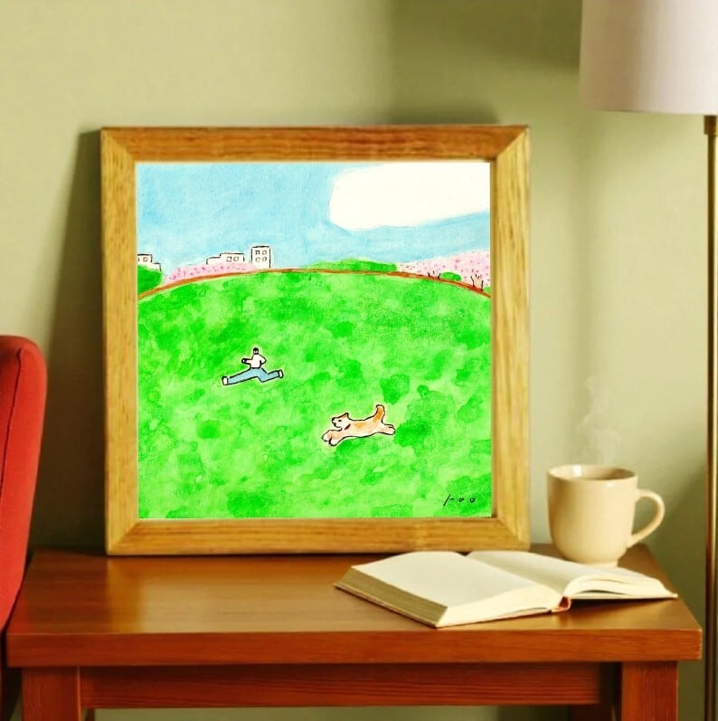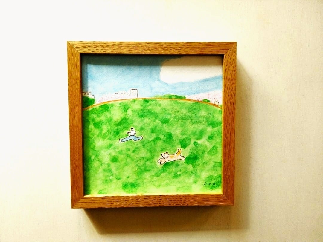 イラスト|原画「春風とキミとぼく」 ※木製額縁入り(18×18㎝フレーム)インテリアアート(+1500円でうちの子に変更が出来ます)