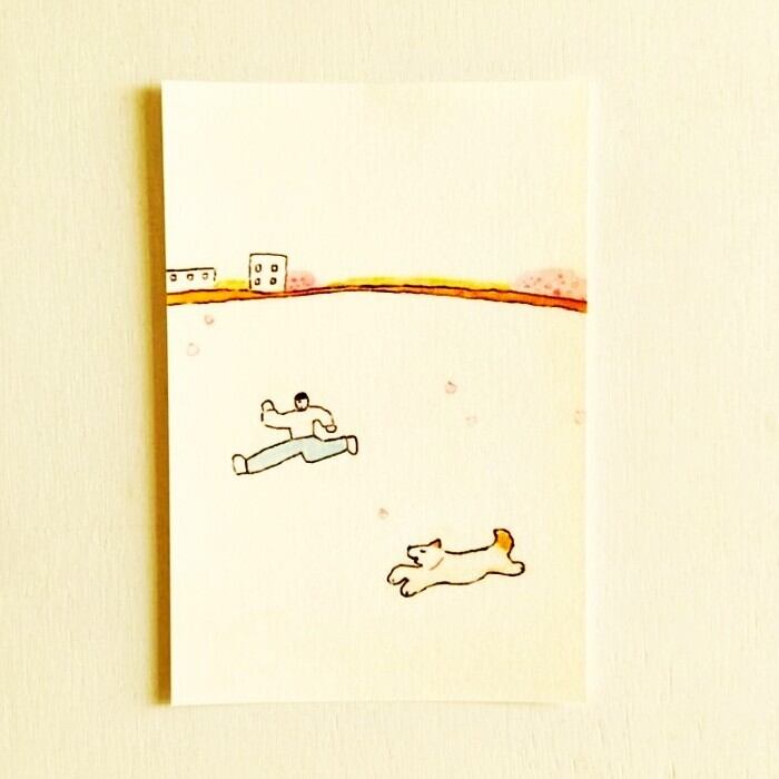 水彩絵の具や水性ペンで描いた、オリジナルイラストのポストカードです。