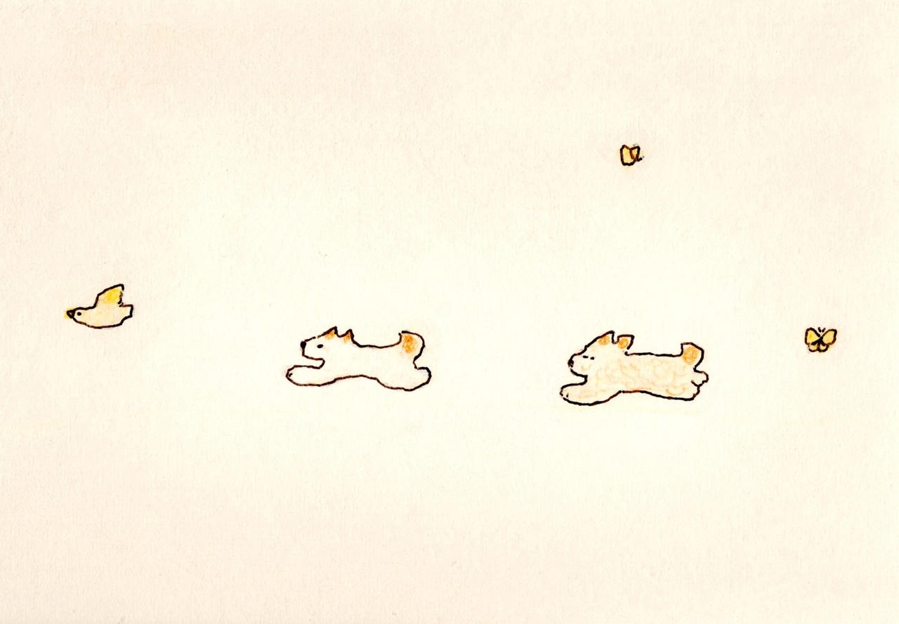 ポストカード「㉘追いかけっこ(鳥)」3枚~ 絵葉書 紙雑貨 イラスト
