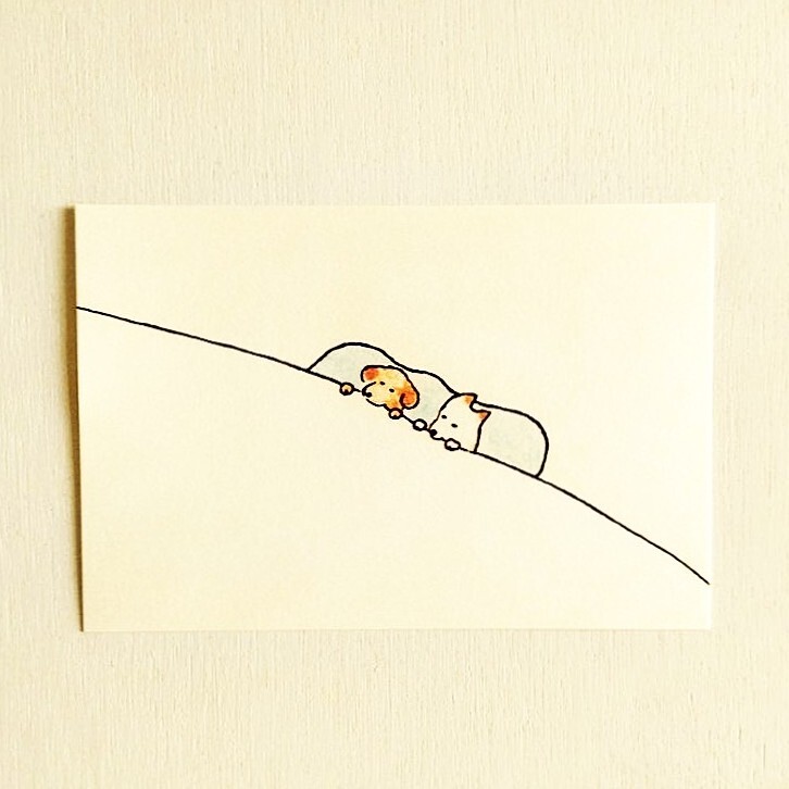 「love mutt dogs」シリーズ、ポストカード制作のために描いた手描きイラスト。