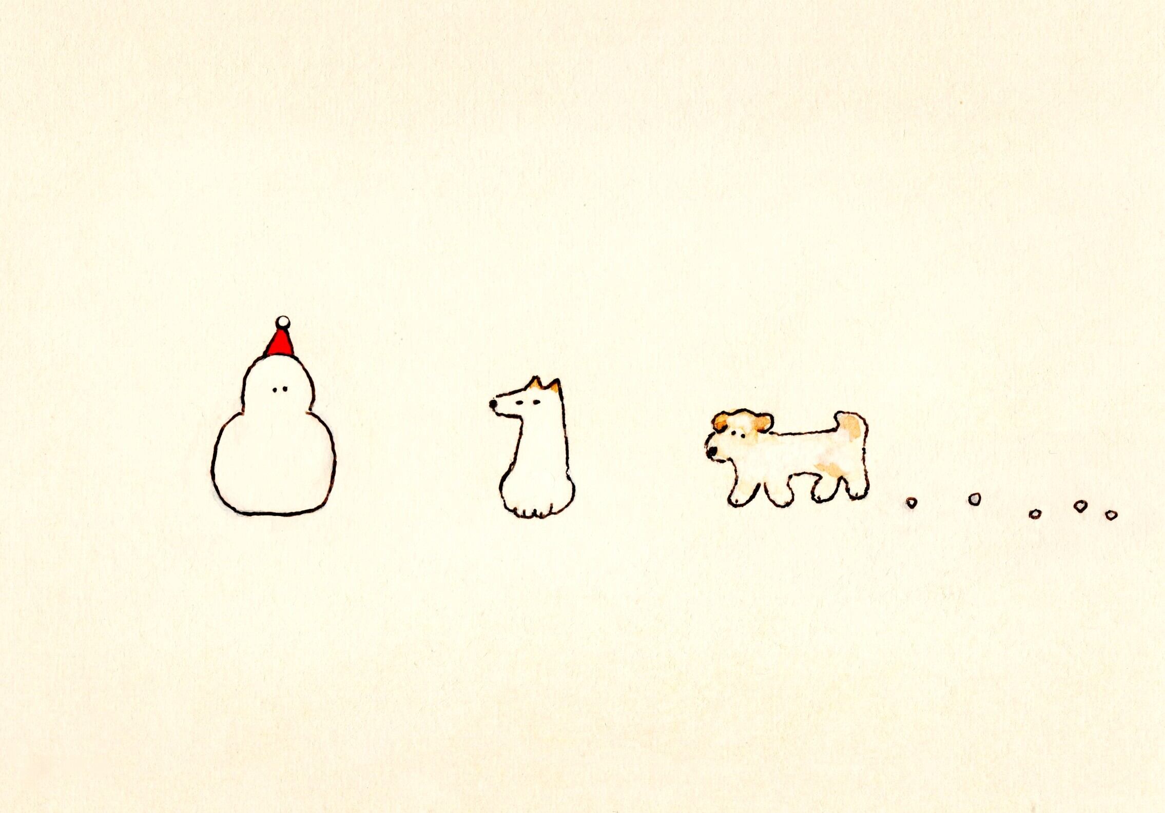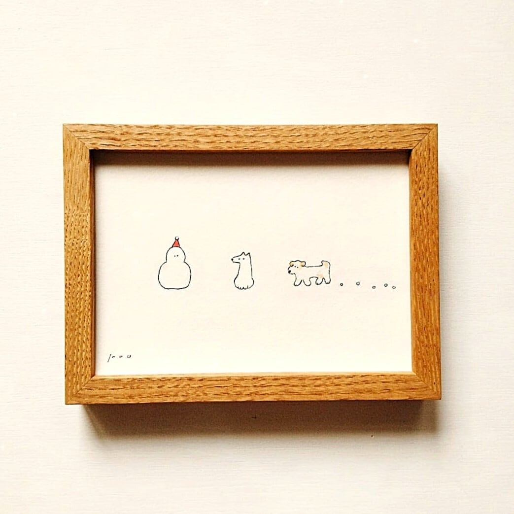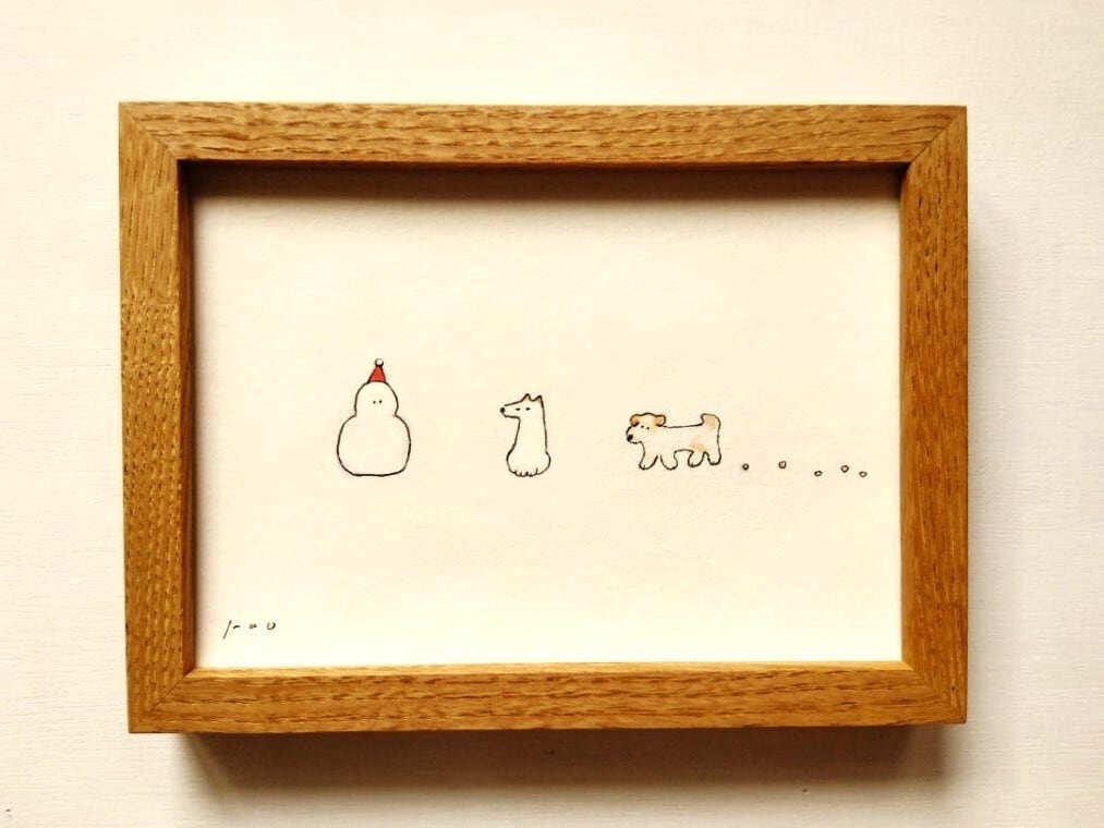 イラスト「雪だるま」 ※木製額縁入り(2Lサイズ)インテリアアート 犬イラスト 原画