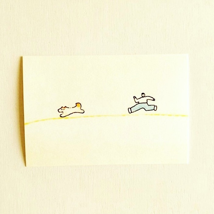 「love mutt dogs」シリーズ、ポストカード制作のために描いた手描きイラスト。