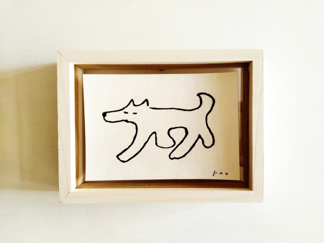 原画|イラスト「歩く犬」※木製額縁入り 犬・キャラクター・モノクロ・送料無料