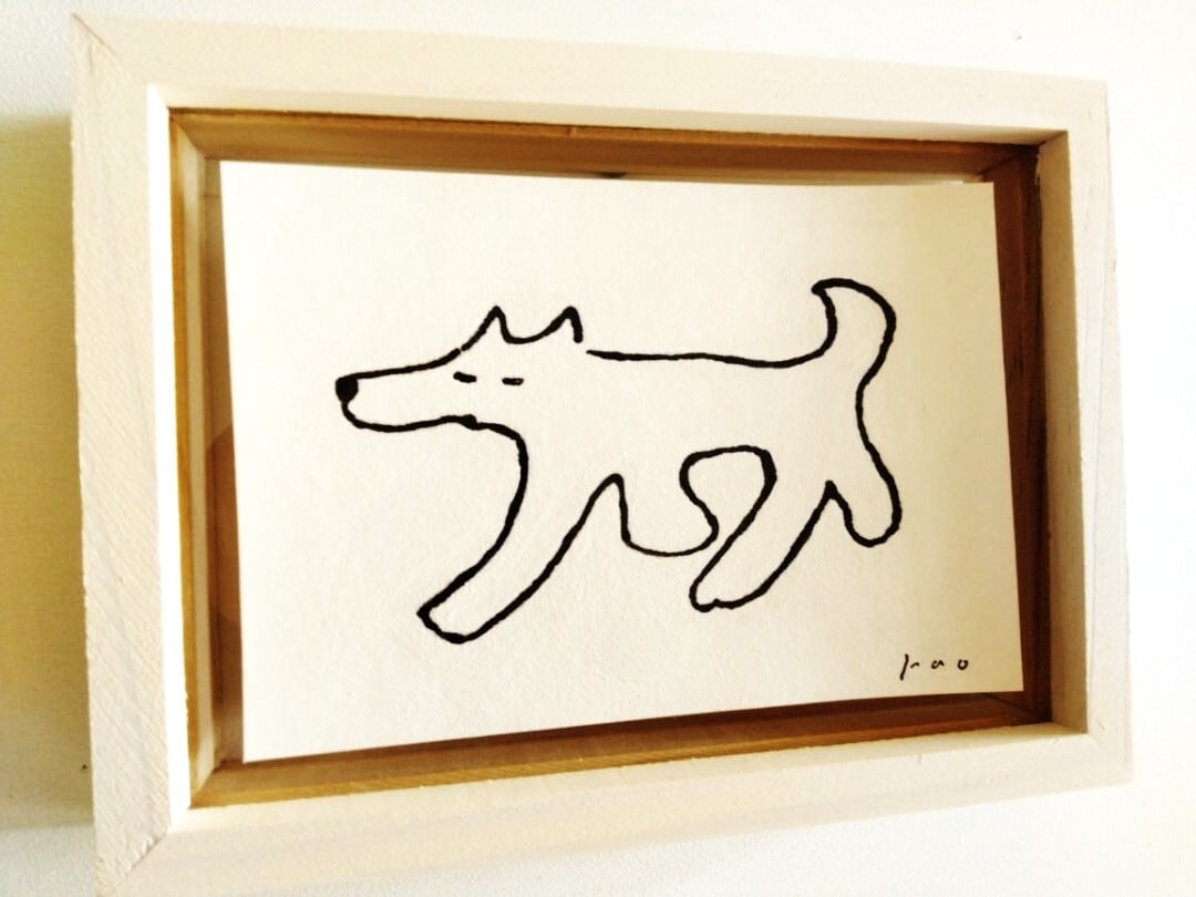 イラストレーション イラスト インテリアアート アナログイラスト 原画 犬 犬の絵 犬イラスト シンプル 線画 キャラクター リラックス 雑種犬 白い犬