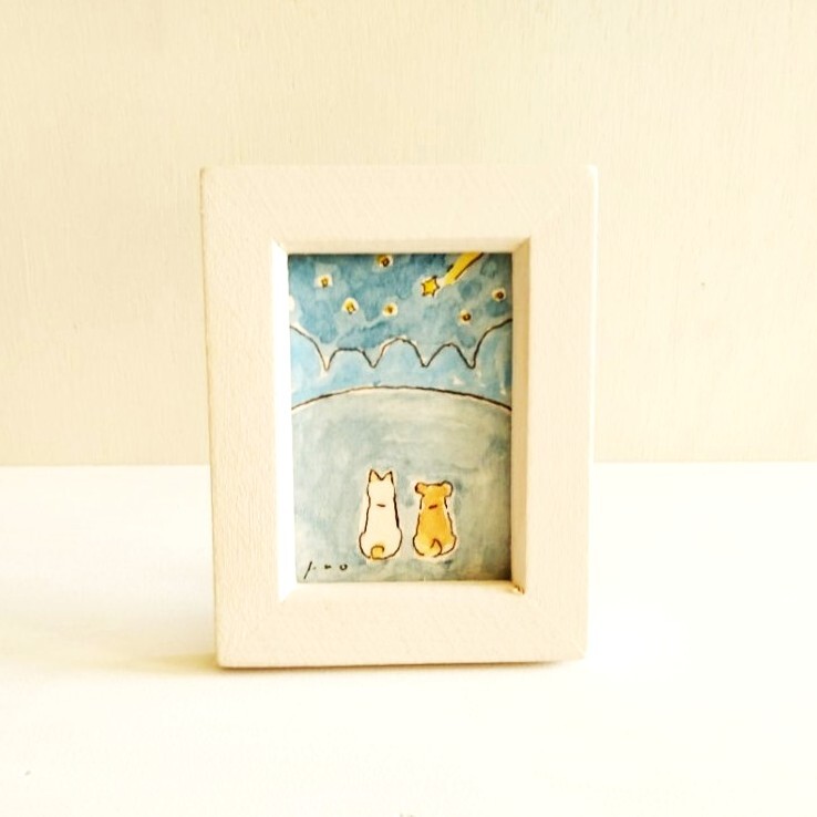 イラスト 原画 「流れ星」※木製額縁入り インテリアアート 犬のイラスト