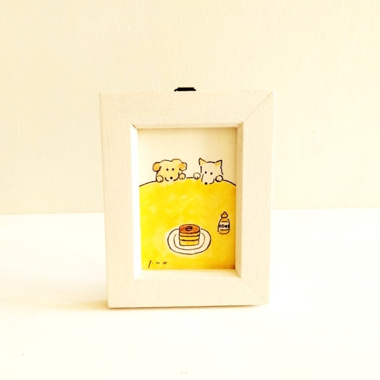 イラスト 原画 「ホットケーキ」※木製額縁入り インテリアアート 犬のイラスト