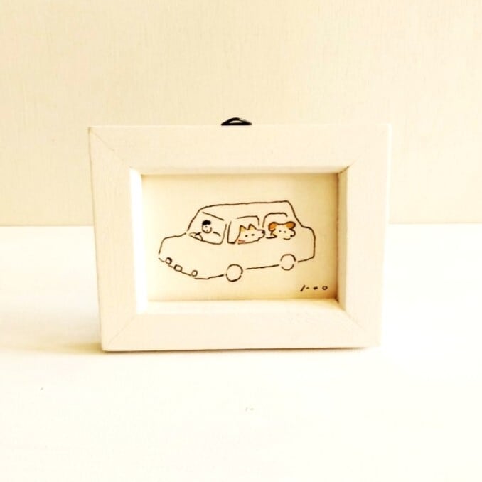 イラスト 原画 「ドライブ」※木製額縁入り インテリアアート 犬のイラスト