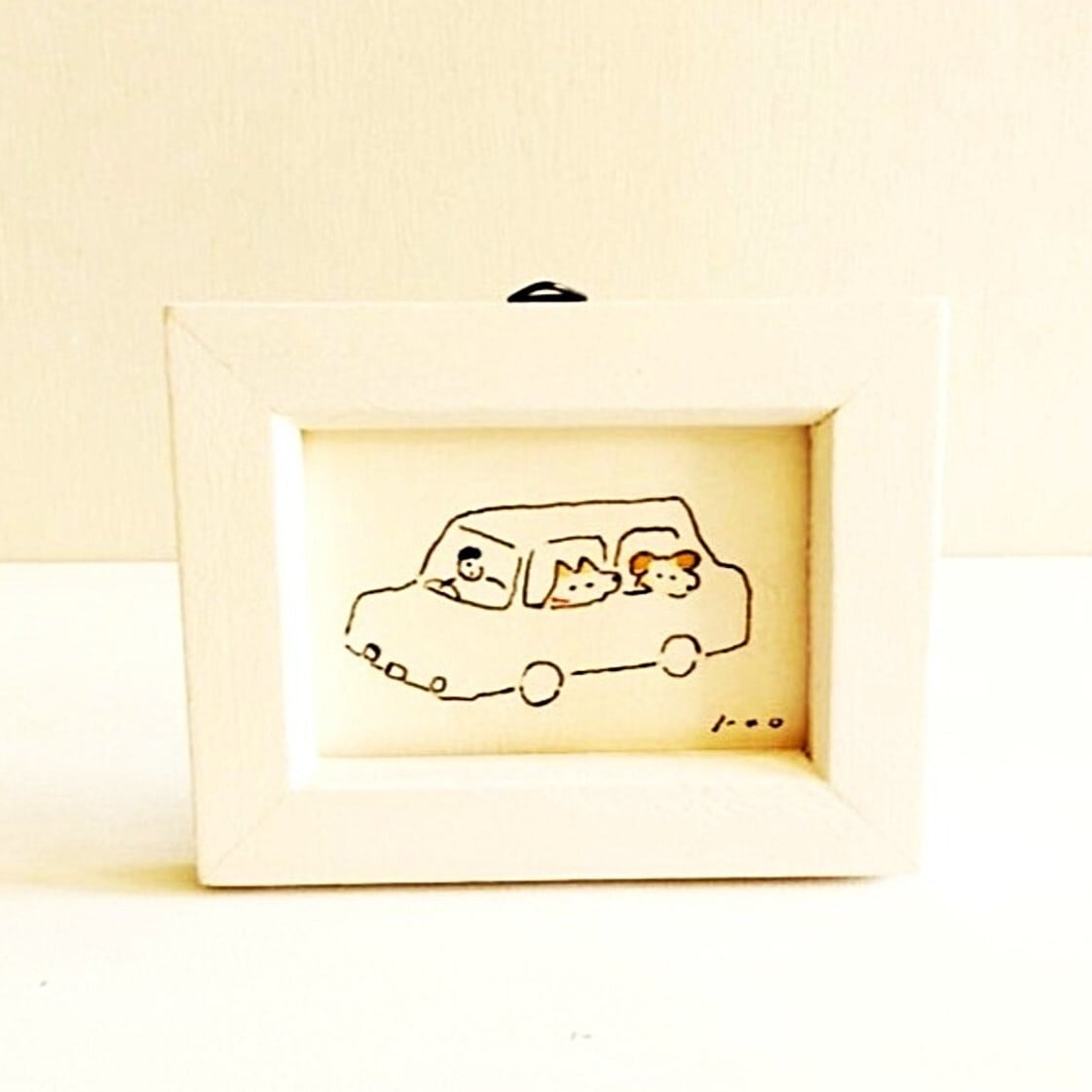 【受注制作】ミニ原画「ドライブ」・イラスト・水彩・犬の絵・送料無料