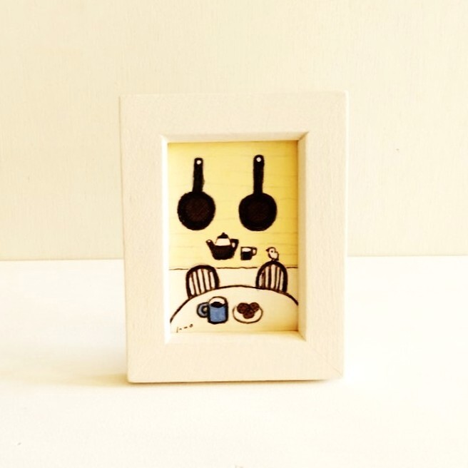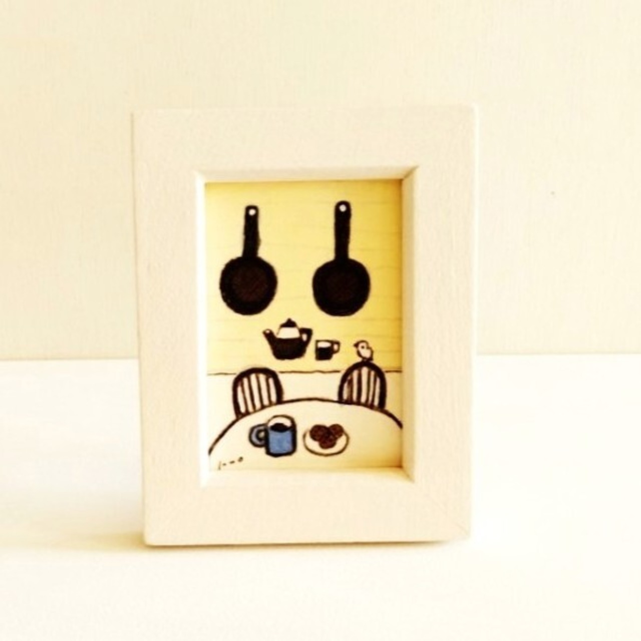 イラスト 原画 「チョコチップクッキー」※木製額縁入り インテリアアート 文鳥
