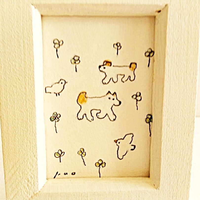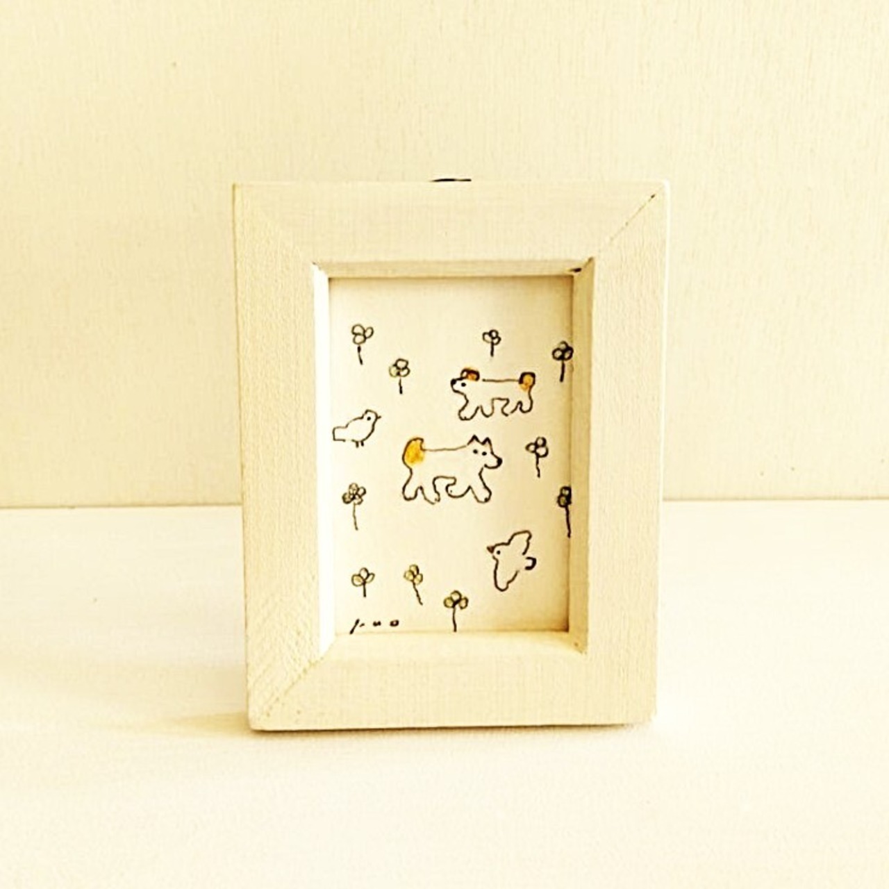 イラスト 原画 「クローバー」※木製額縁入り インテリアアート 犬のイラスト ミニ原画