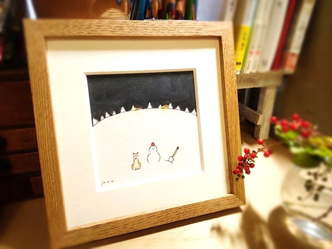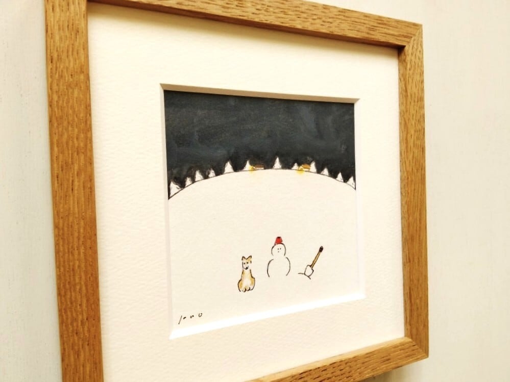 「雪の夜の物語」 原画イラスト ※木製額縁入り インテリアアート