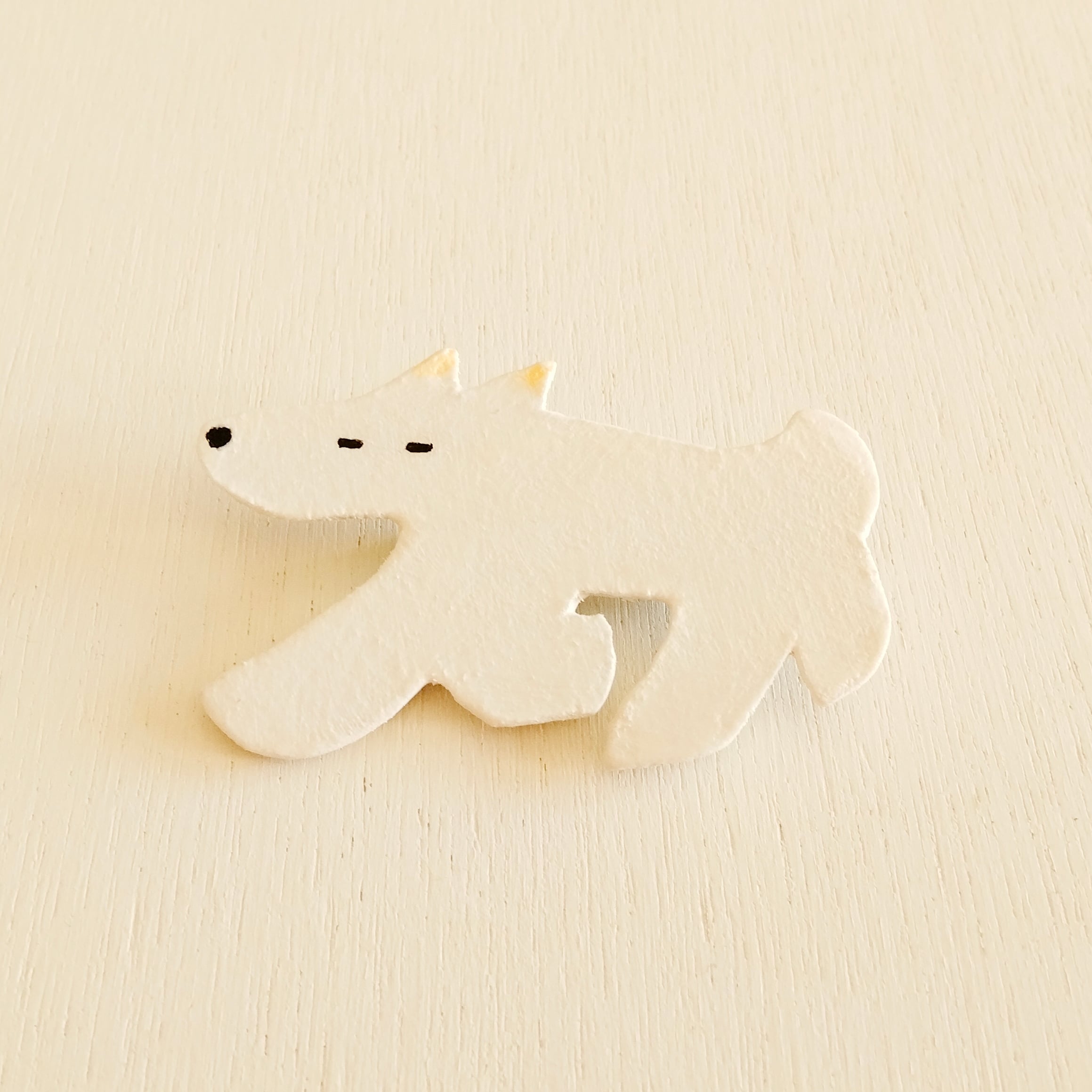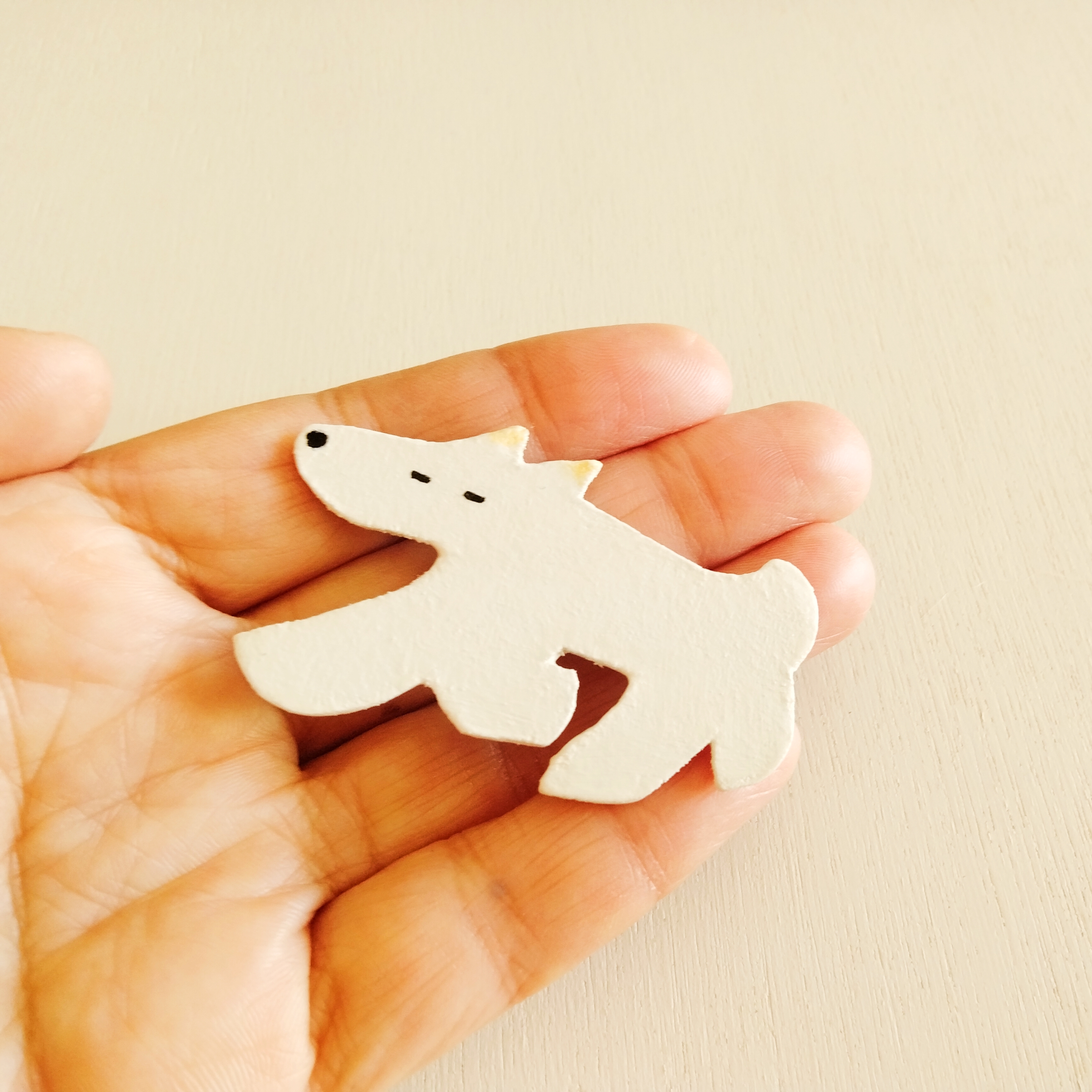 シンプルな犬のイラストを、ブローチに仕立てました。