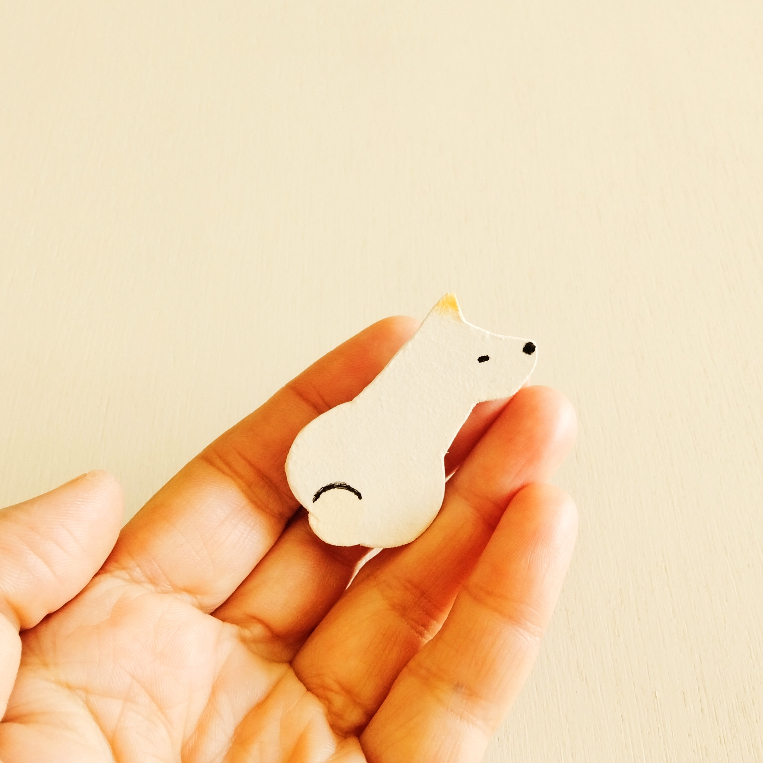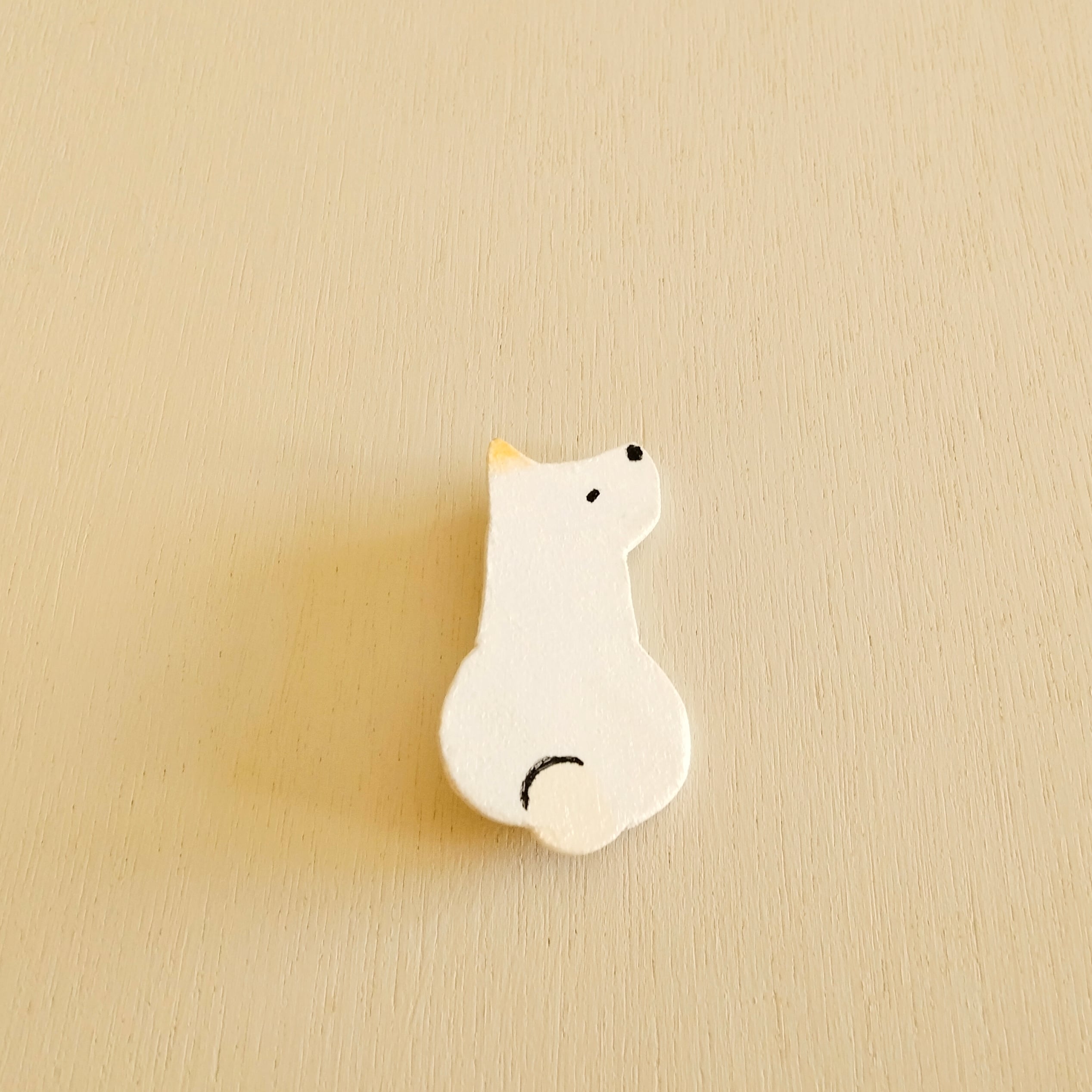 白い犬のブローチ|犬のイラスト 木製 ハンドメイド オリジナルデザイン