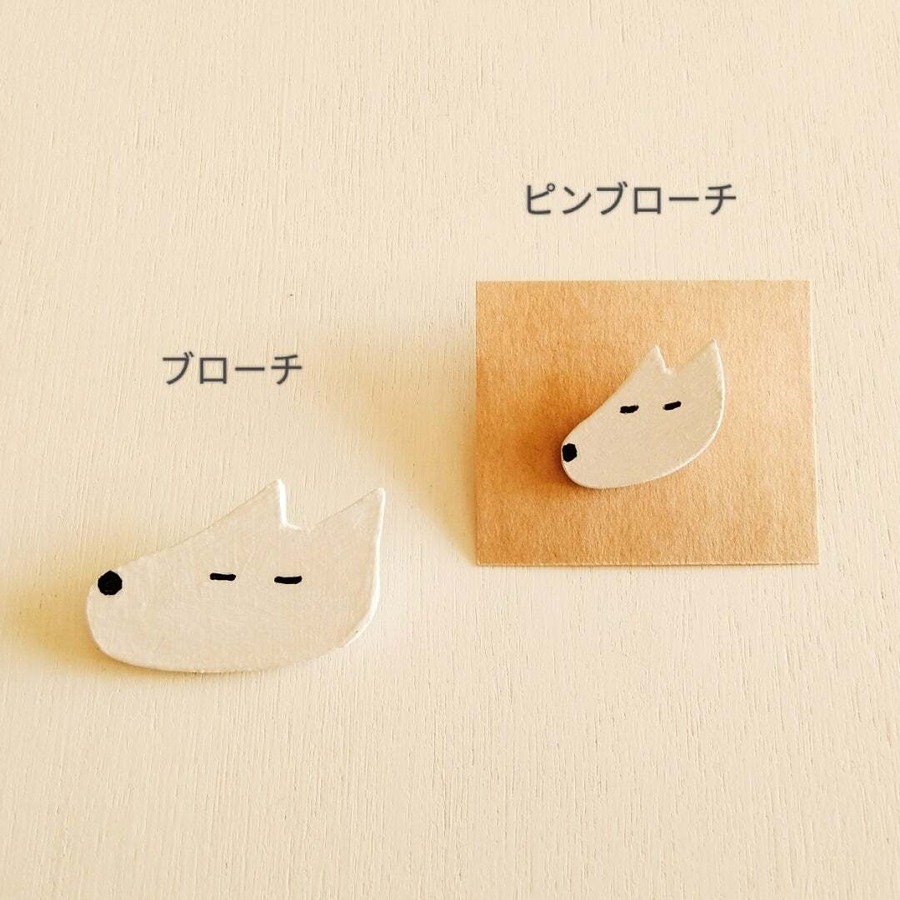 ピンブローチ|犬のキャラクター 木製 ハンドメイド オリジナルデザイン