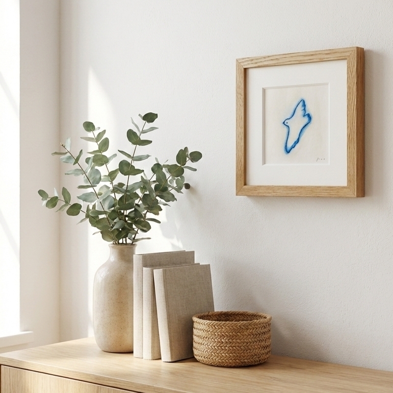 インテリア インテリアアート イラスト イラストレーター アナログイラスト 青 ブルー ドローイング 新築祝い 引っ越し祝い 誕生日 ギフト 北欧 北欧インテリア 北欧スタイル ナチュラルインテリア 鳥 鳥の絵
