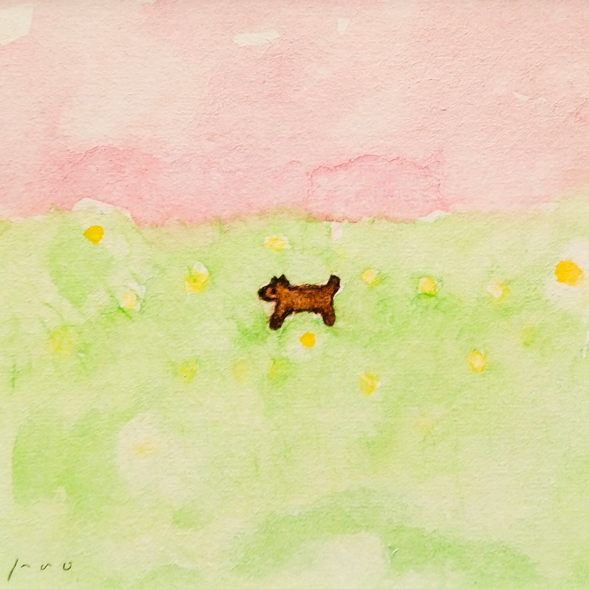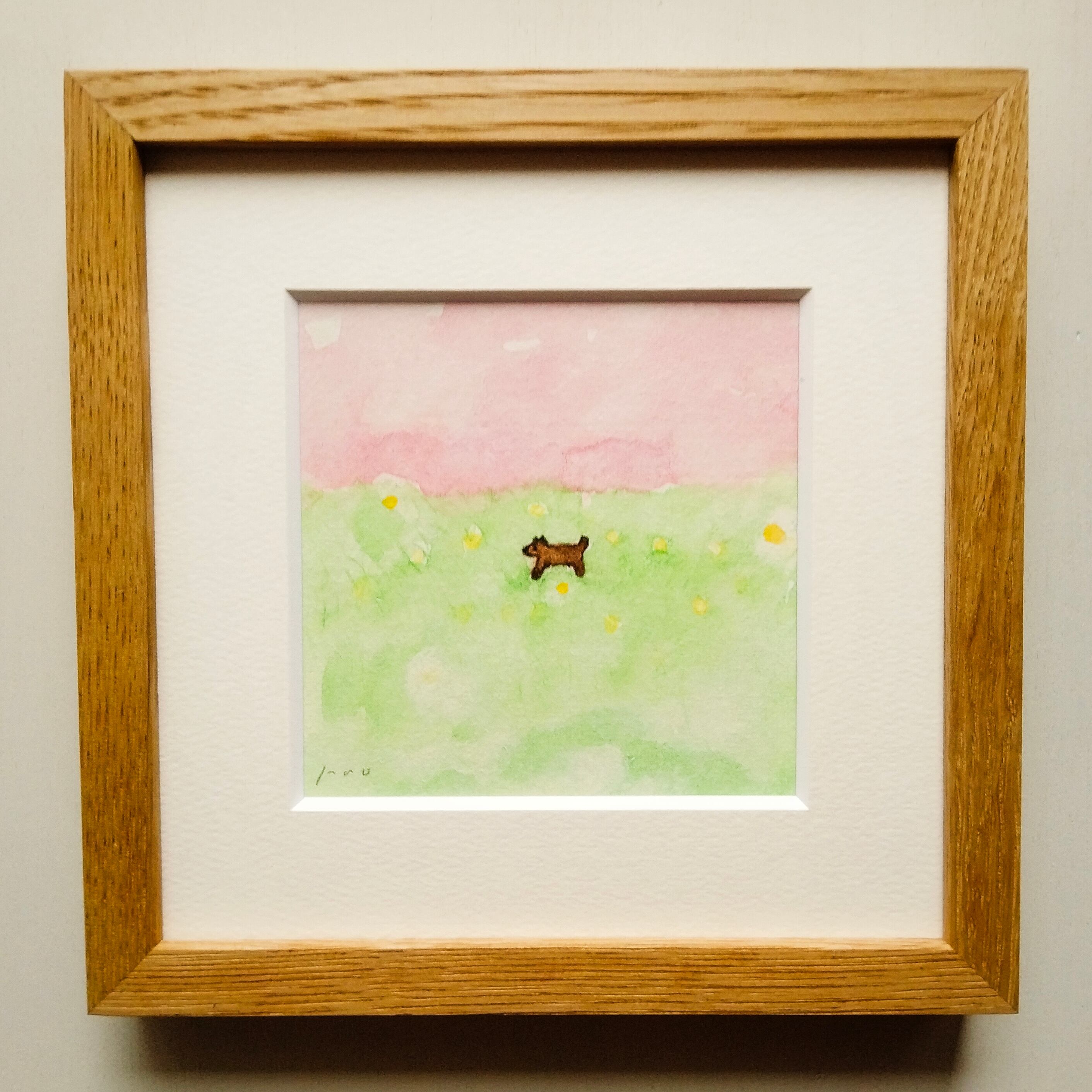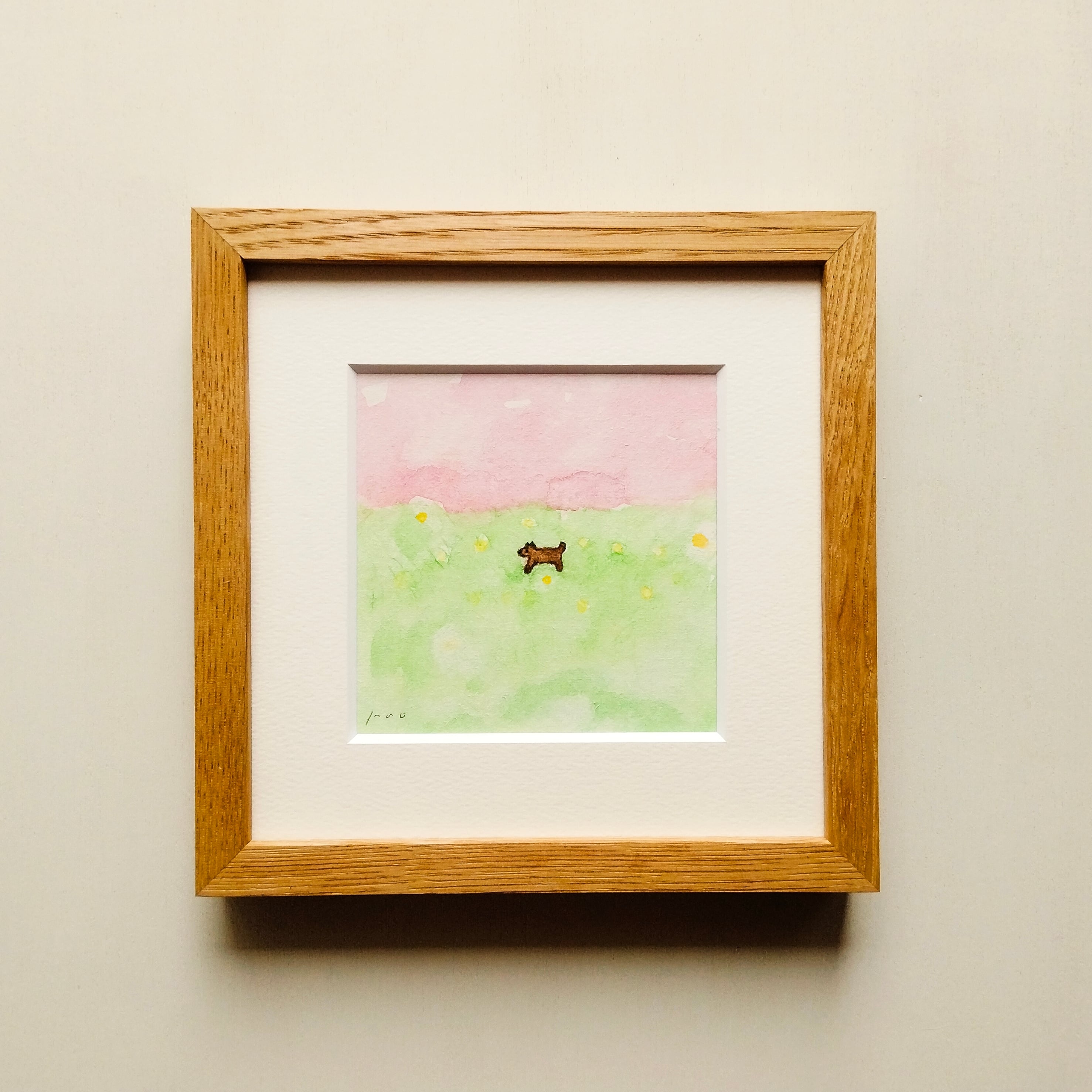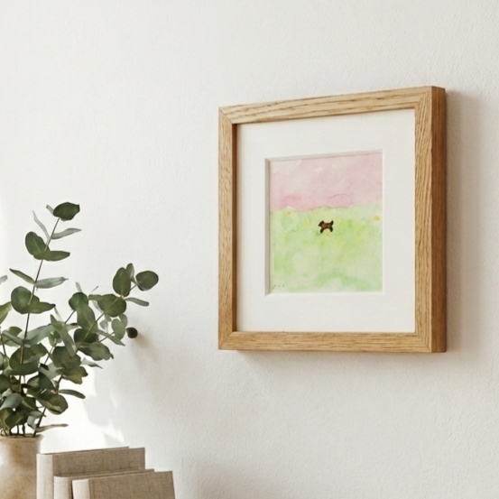 インテリア インテリアアート イラスト イラストレーター アナログイラスト 春 犬 ドローイング 水彩絵の具 風景画 北欧インテリア リラックス