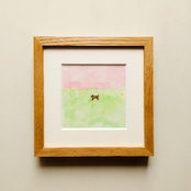 「春景色」原画 ※木製額縁入り(18㎝角)一点物 水彩 イラスト 北欧インテリア