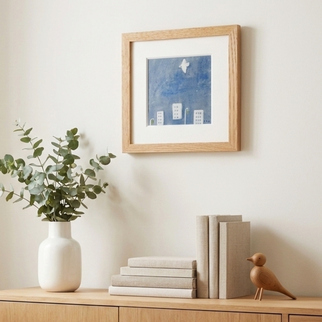 インテリア インテリアアート イラスト イラストレーター アナログイラスト 北欧インテリア 原画 手描きイラスト 一点物 風景画 青 鳥