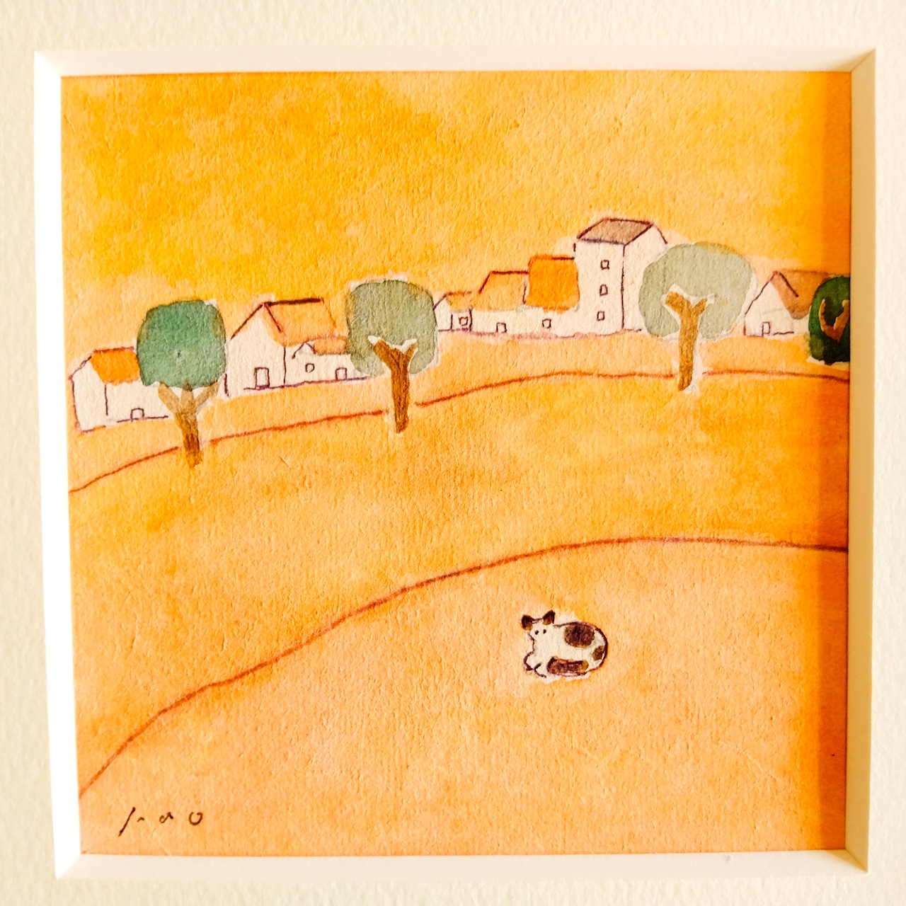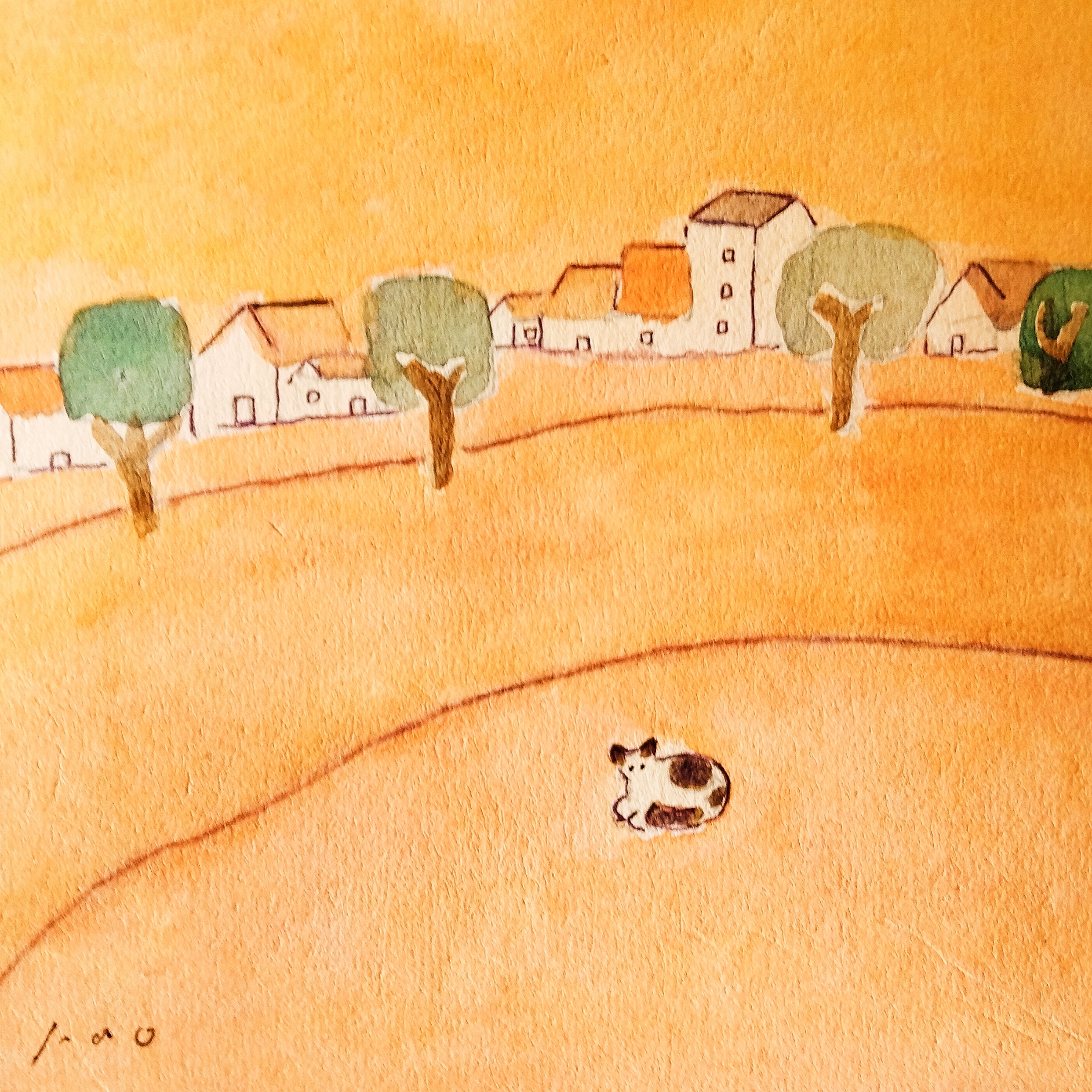 インテリア インテリアアート イラスト イラストレーター アナログイラスト 北欧インテリア 原画 手描きイラスト 一点物 風景画 猫