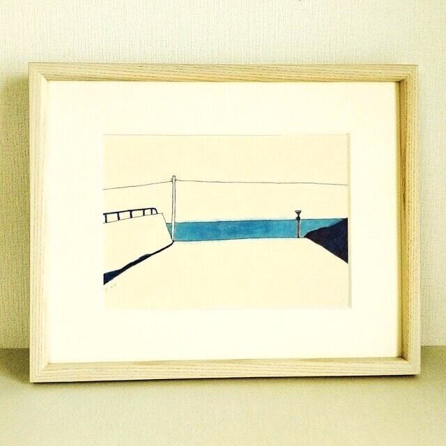 インテリア インテリアアート ナチュラルインテリア イラスト イラストレーター アナログイラスト オリジナル額縁 無垢材 額縁 絵画 リラックス 新築祝い 引っ越し祝い 誕生日 海 風景画 青 BLUE