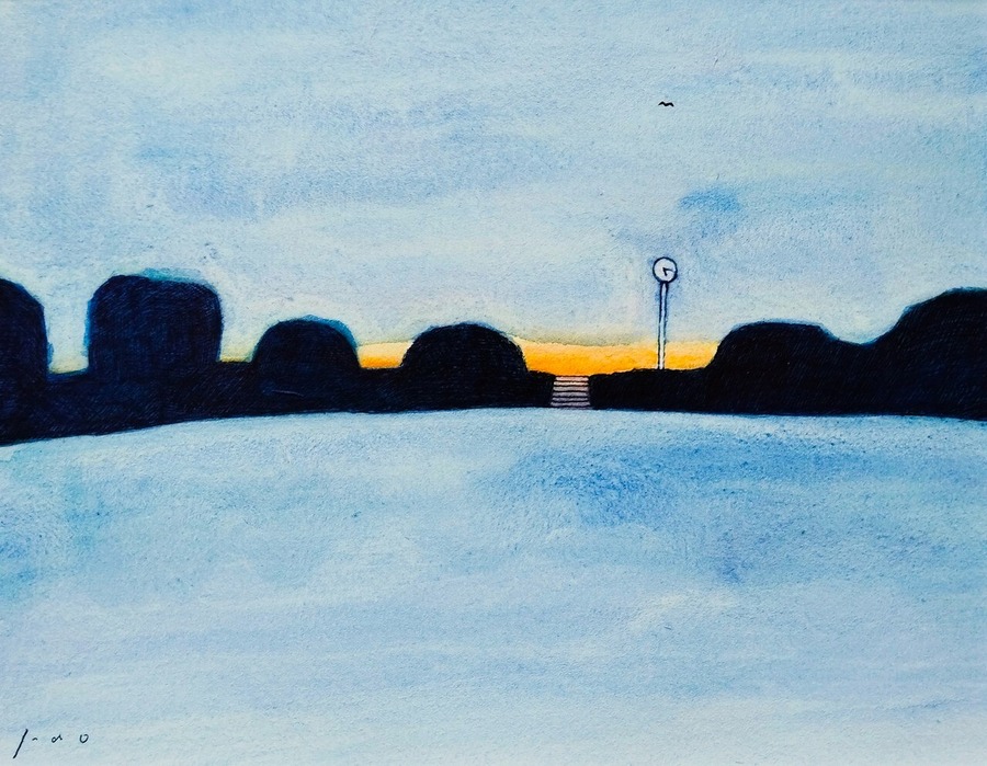 夕方と夜の間の一瞬の風景をイメージして描きました。