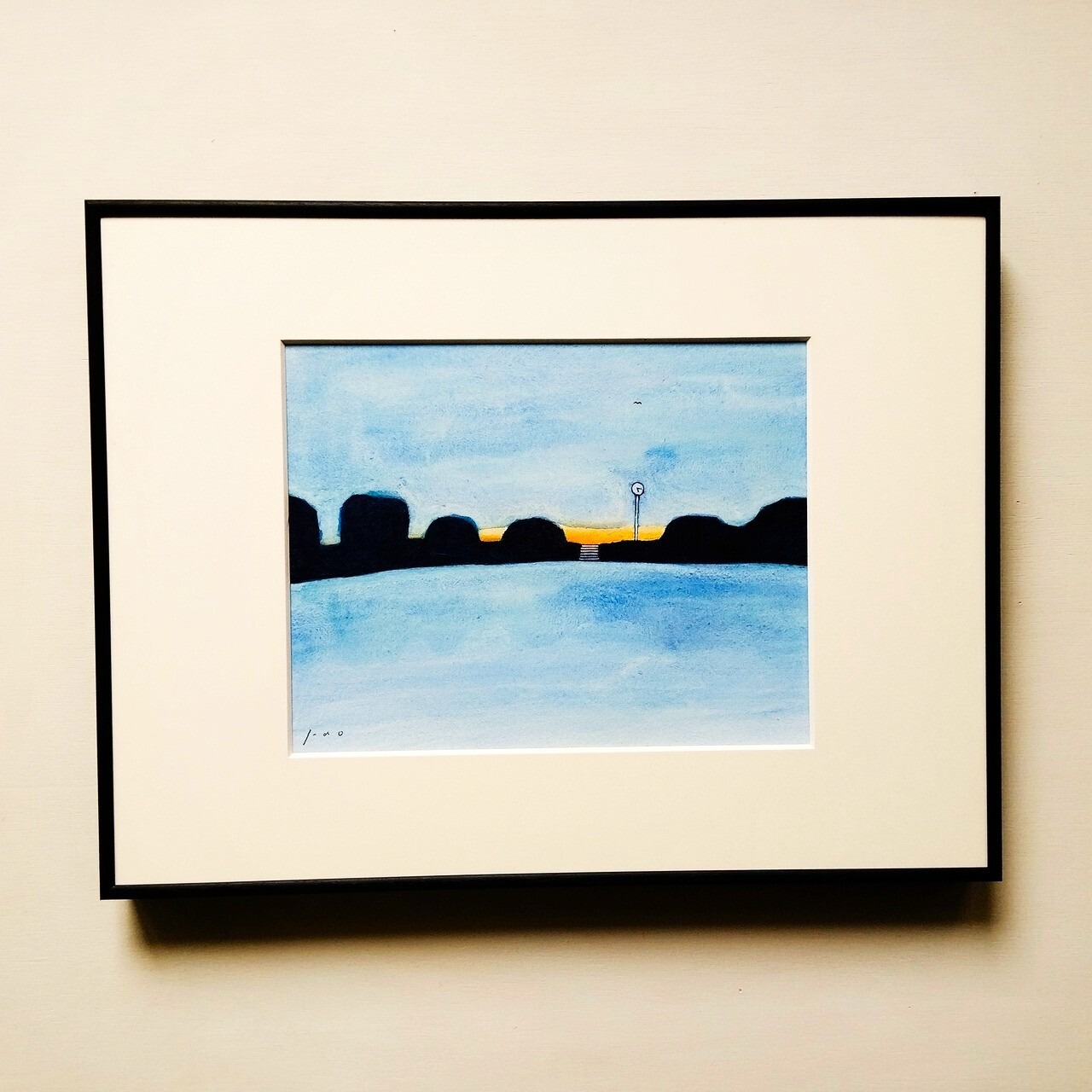 風景画|原画「夕刻」イラスト 水彩 絵画 一点物 ※太子サイズ額縁入り