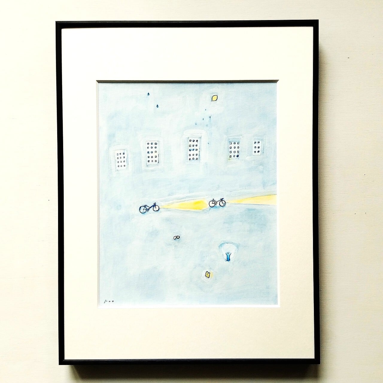 原画「レモンの夜に」イラスト 水彩 絵画 一点物 ※太子サイズ額縁入り