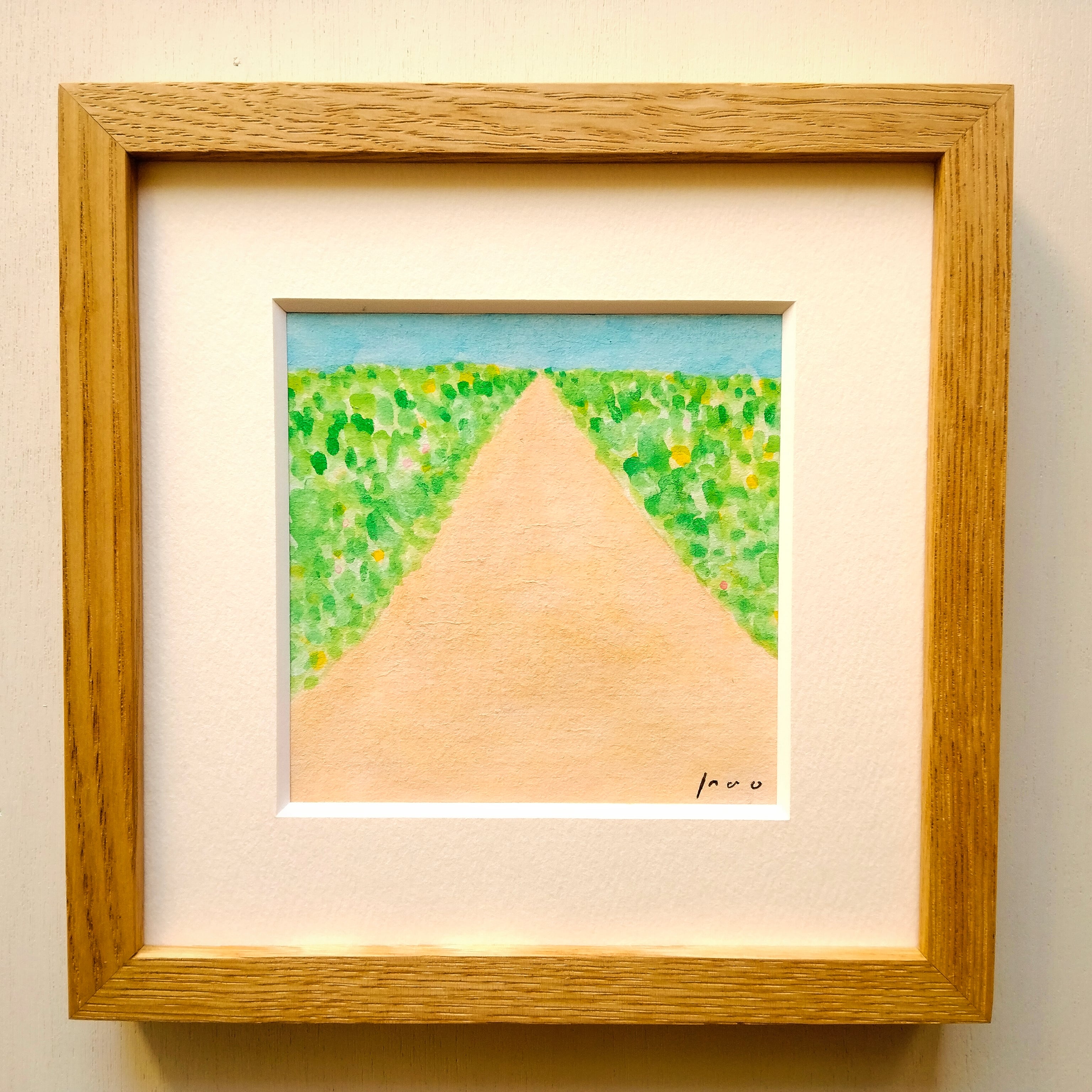 「空へ続く道」原画 ※木製額縁入り(18㎝角)一点物 水彩 イラスト 北欧インテリア