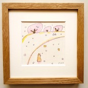 「桜の季節」原画 ※木製額縁入り(18㎝角)一点物 水彩 イラスト 北欧インテリア