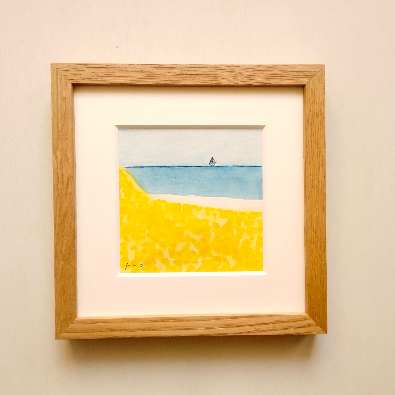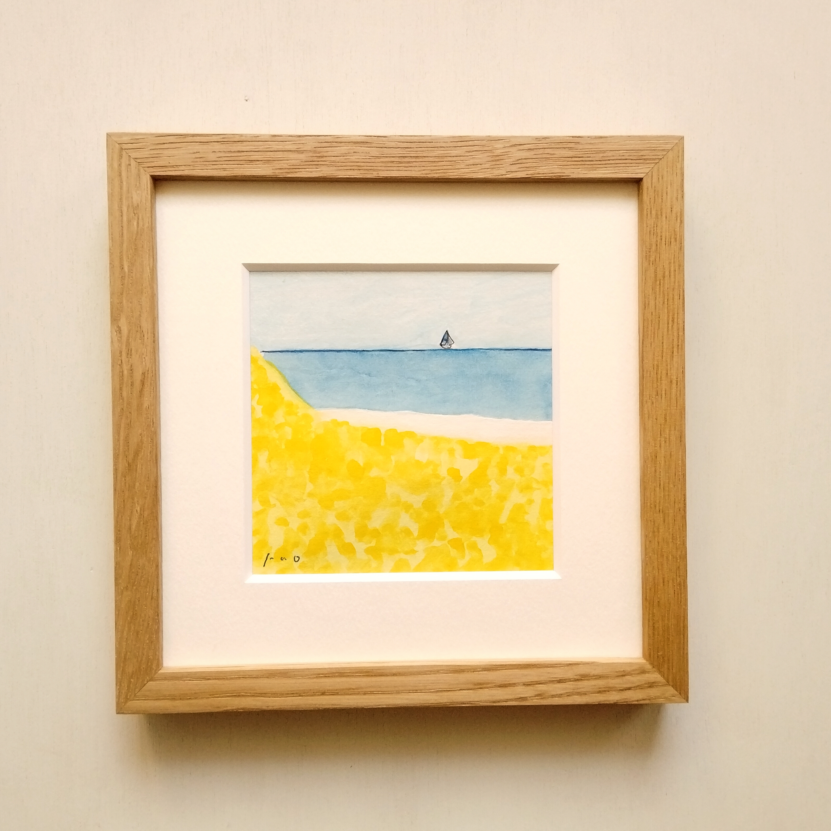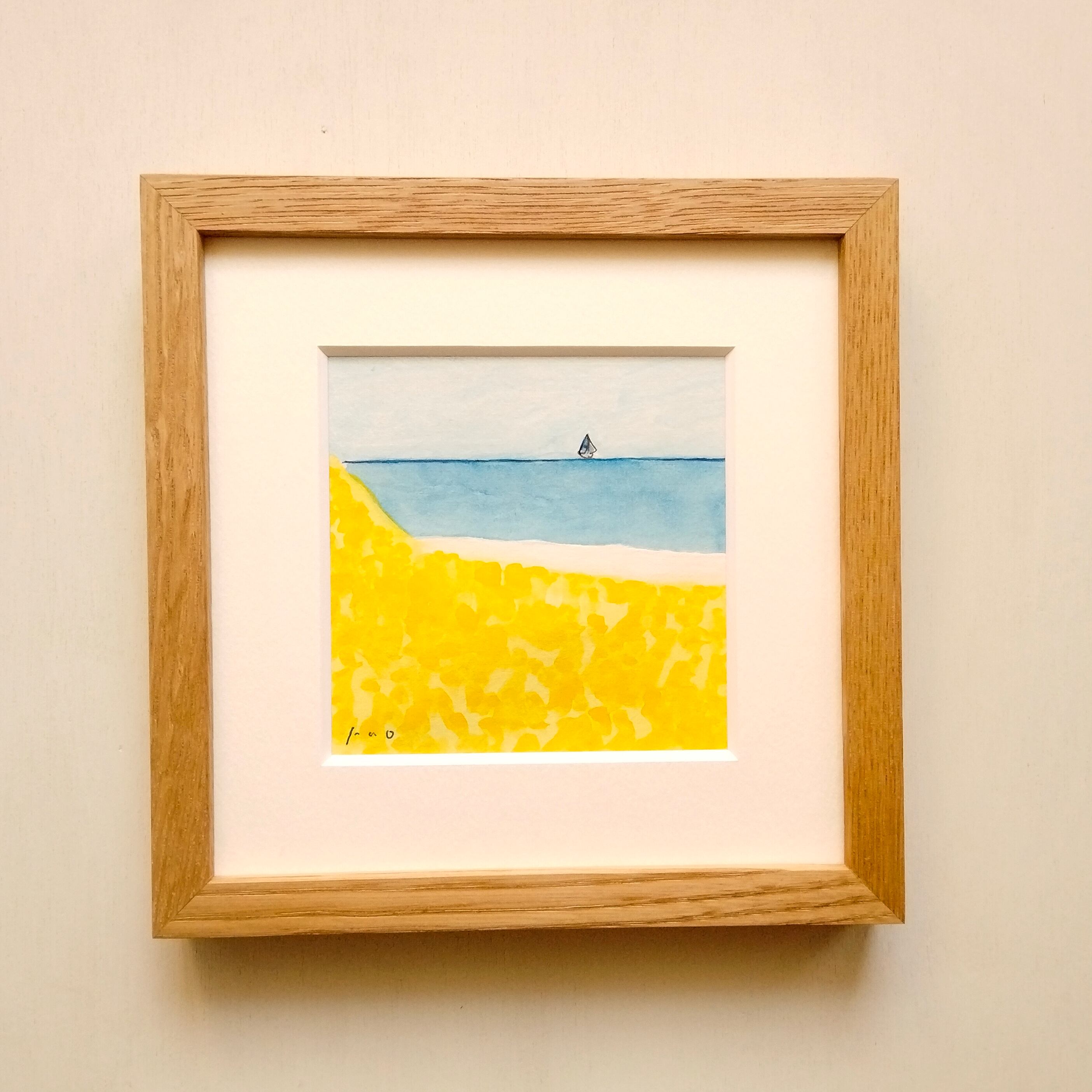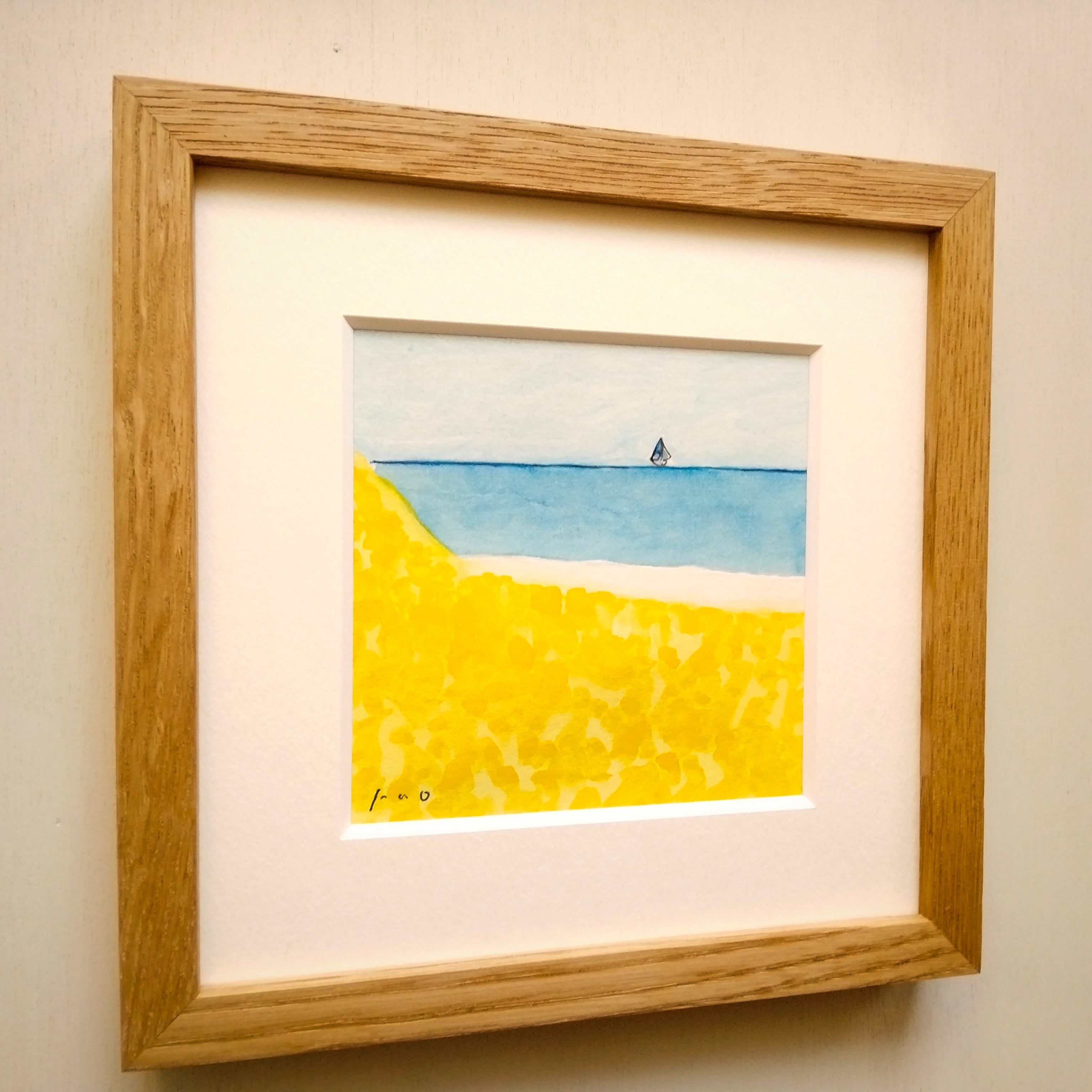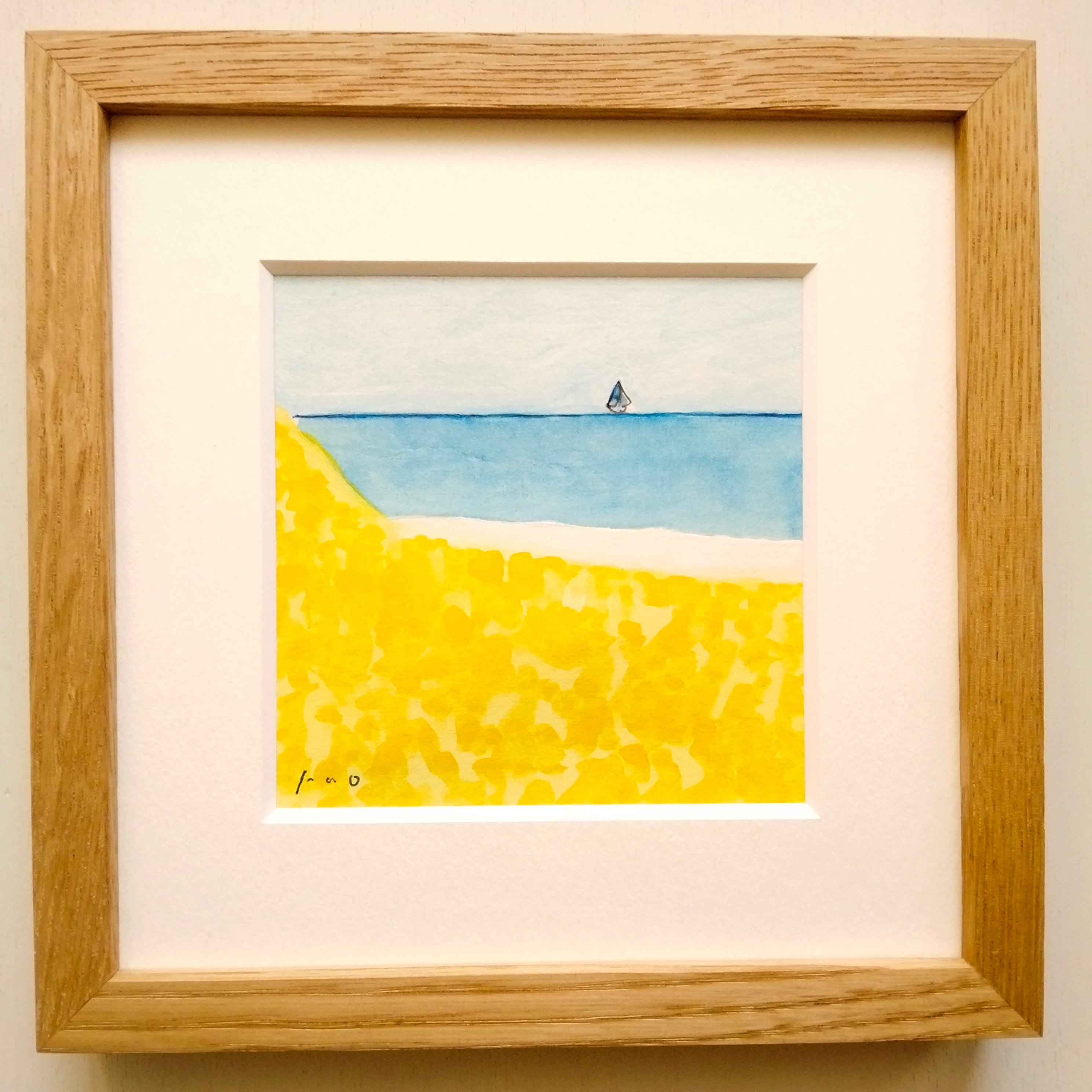 「春の海」原画 ※木製額縁入り(18㎝角)一点物 水彩 イラスト 北欧インテリア