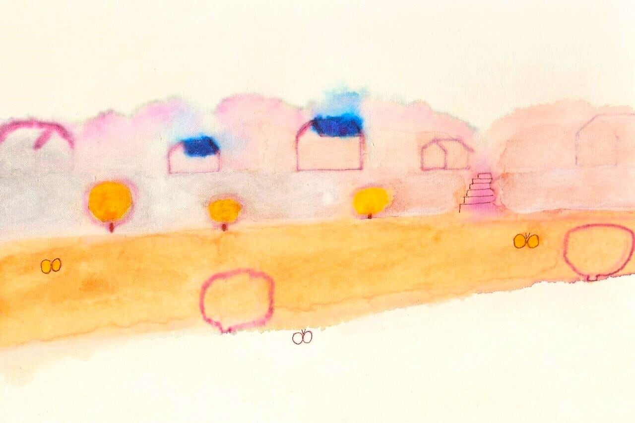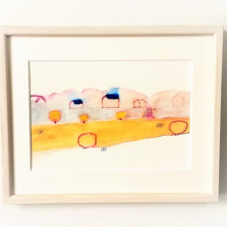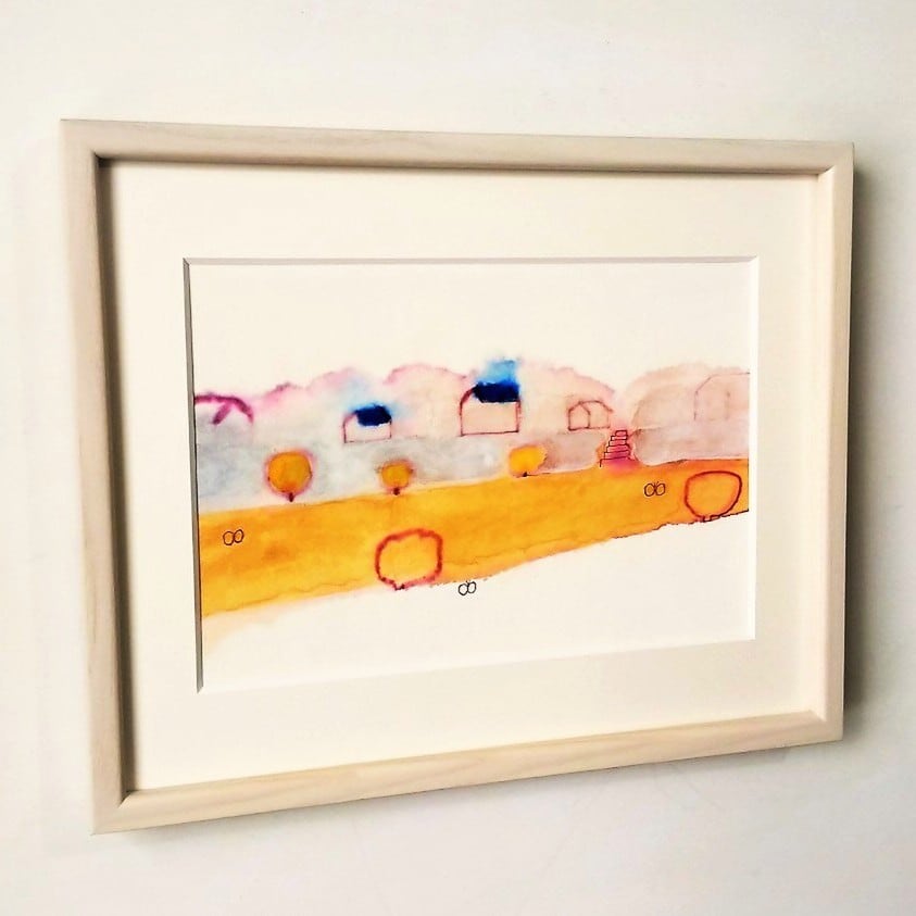 インテリア インテリアアート イラスト イラストレーター アナログイラスト 北欧インテリア 原画 手描きイラスト 一点物 風景画 春 春の絵 ピンク リラックス