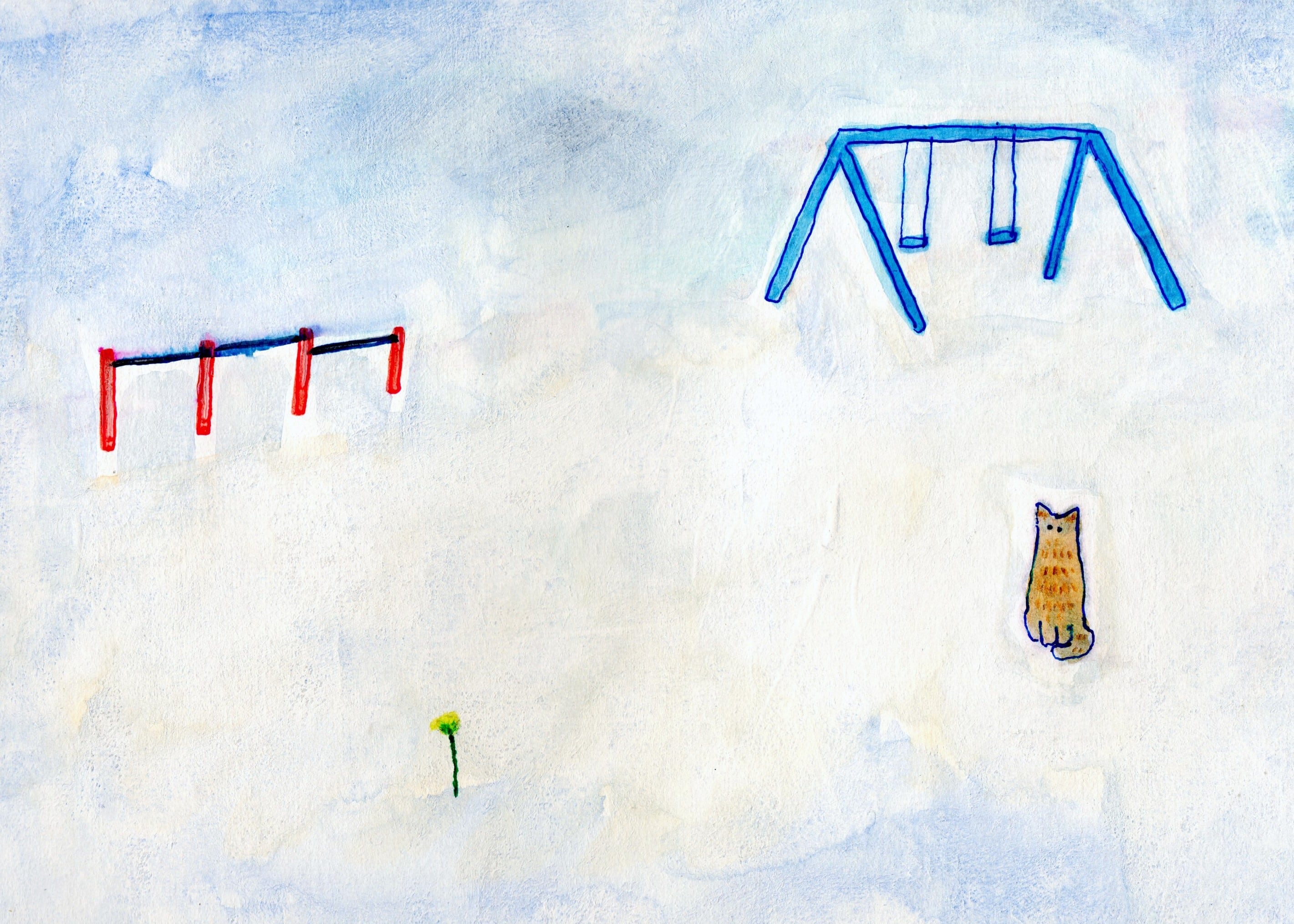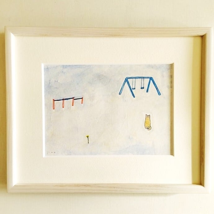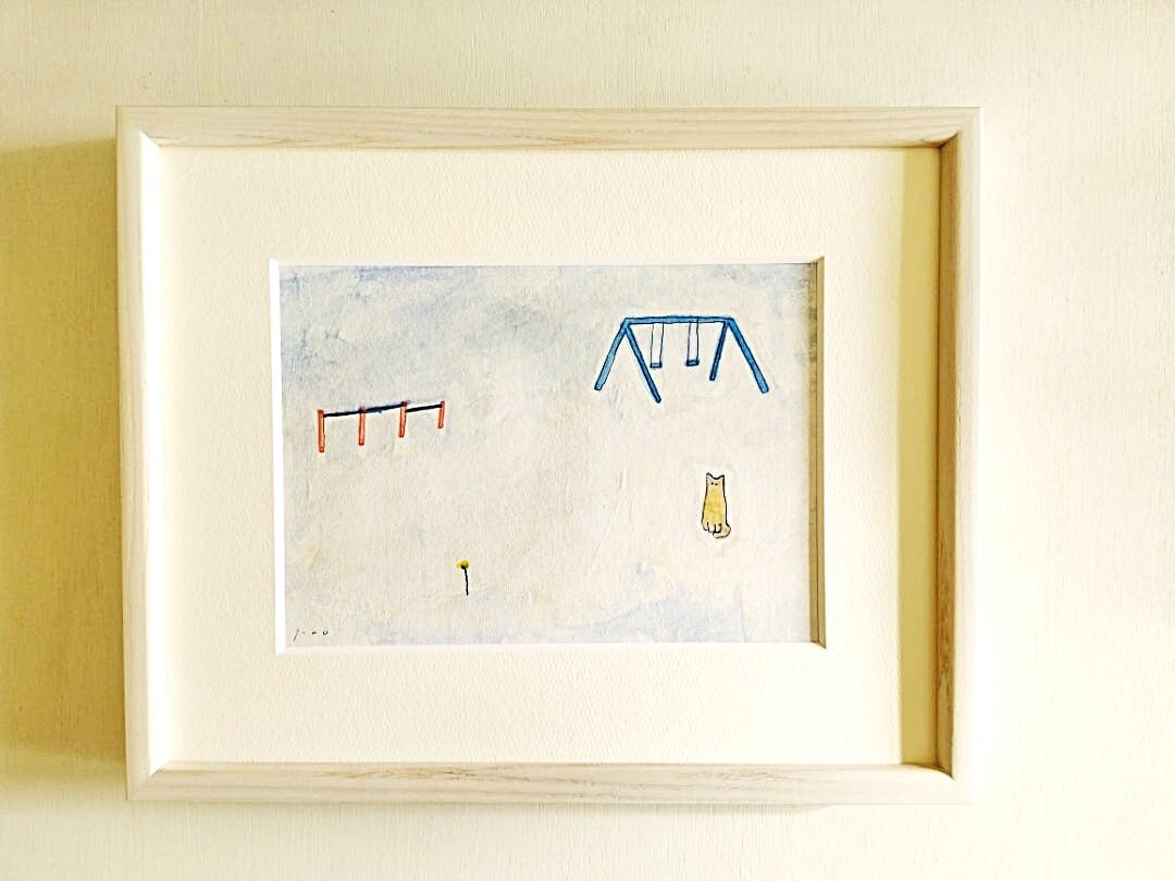 インテリア インテリアアート イラスト イラストレーター アナログイラスト インテリアアート 原画 手描きイラスト 一点物 風景画 春 猫 猫の絵